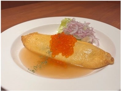 サーモン入りのオムレツに「シラリカいくら」を乗せたメニューです。
