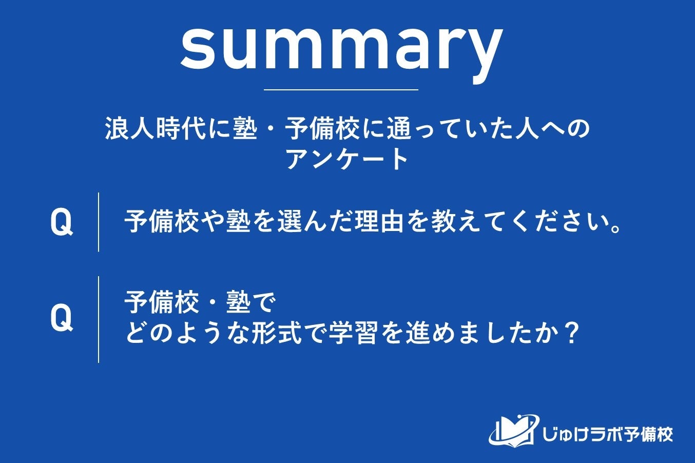 じゅけラボ予備校(所在地:大阪市北区、代表取締役:後藤智則)は、浪人時代に塾または予備校に通学して大学受験をした19歳〜26歳の男女219人を対象に、浪人期間中の勉強法に関する実態調査を実施しました。