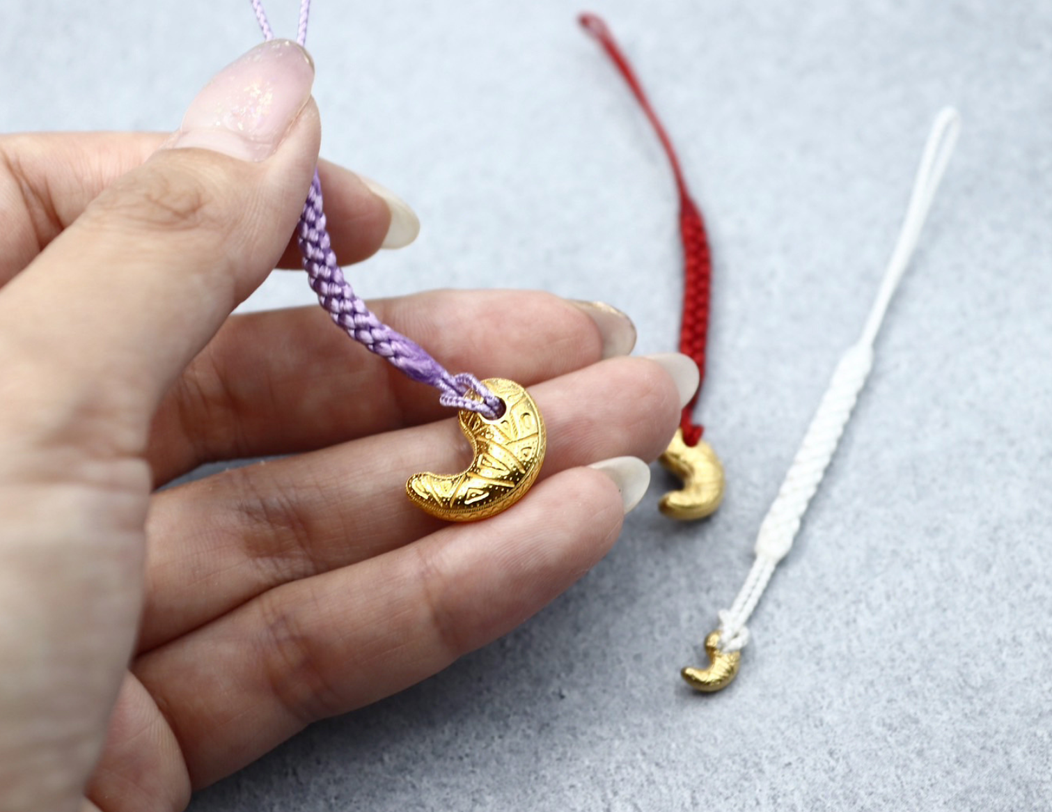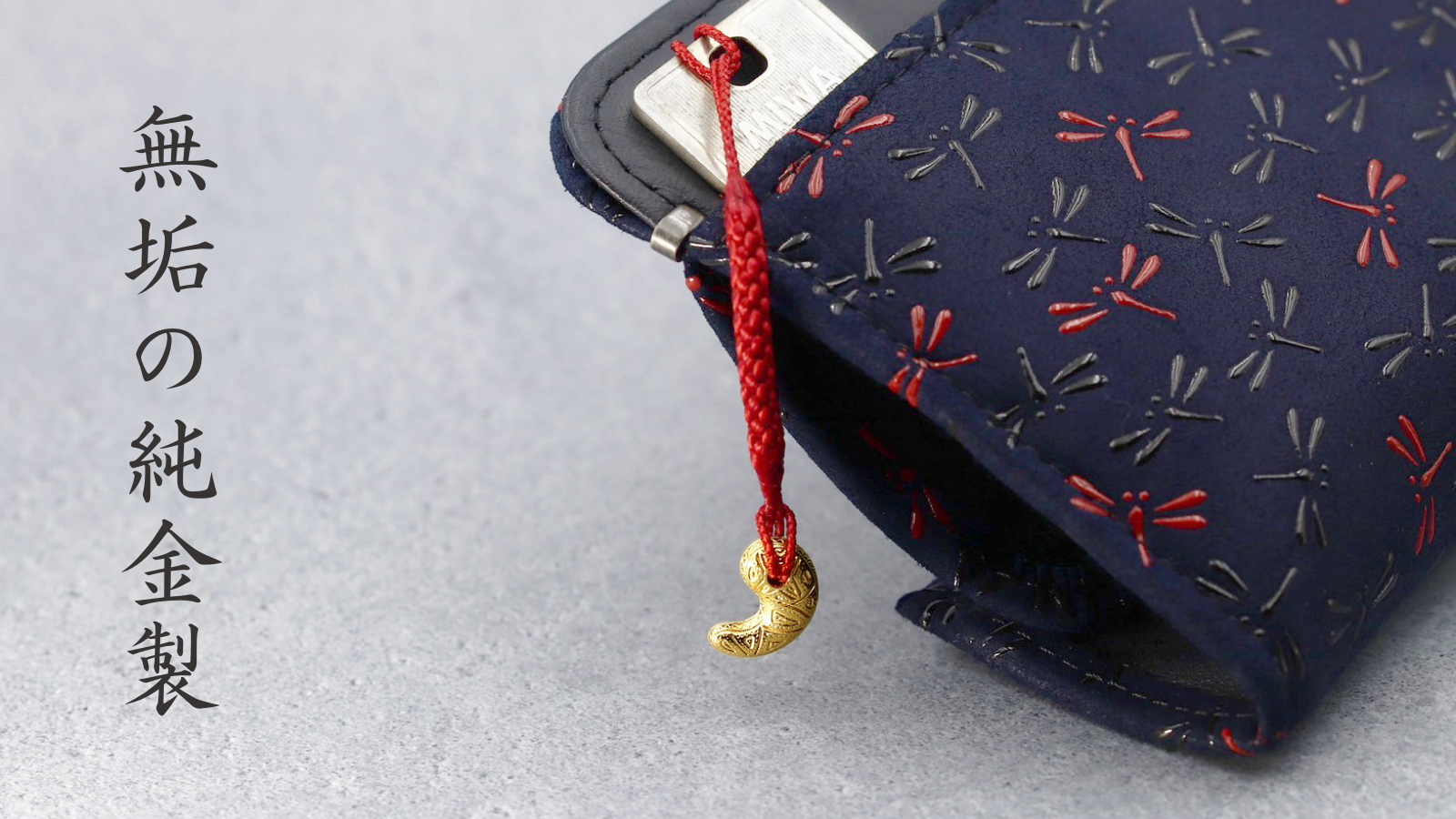 タイプは、鞄やポーチに入れられるお守りタイプと、財布や携帯、キーホルダーに付けられる根付タイプの2種類。ぜひ、晴れやかな新年から無垢な純金を身近に感じて欲しい。
