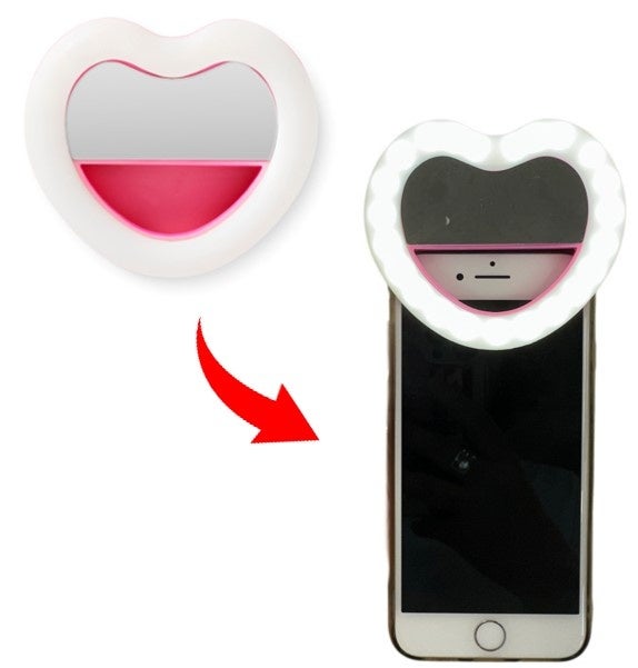 スマホに挟んで使います。顔をカメラに寄せて撮ると目の中がハートに・・・