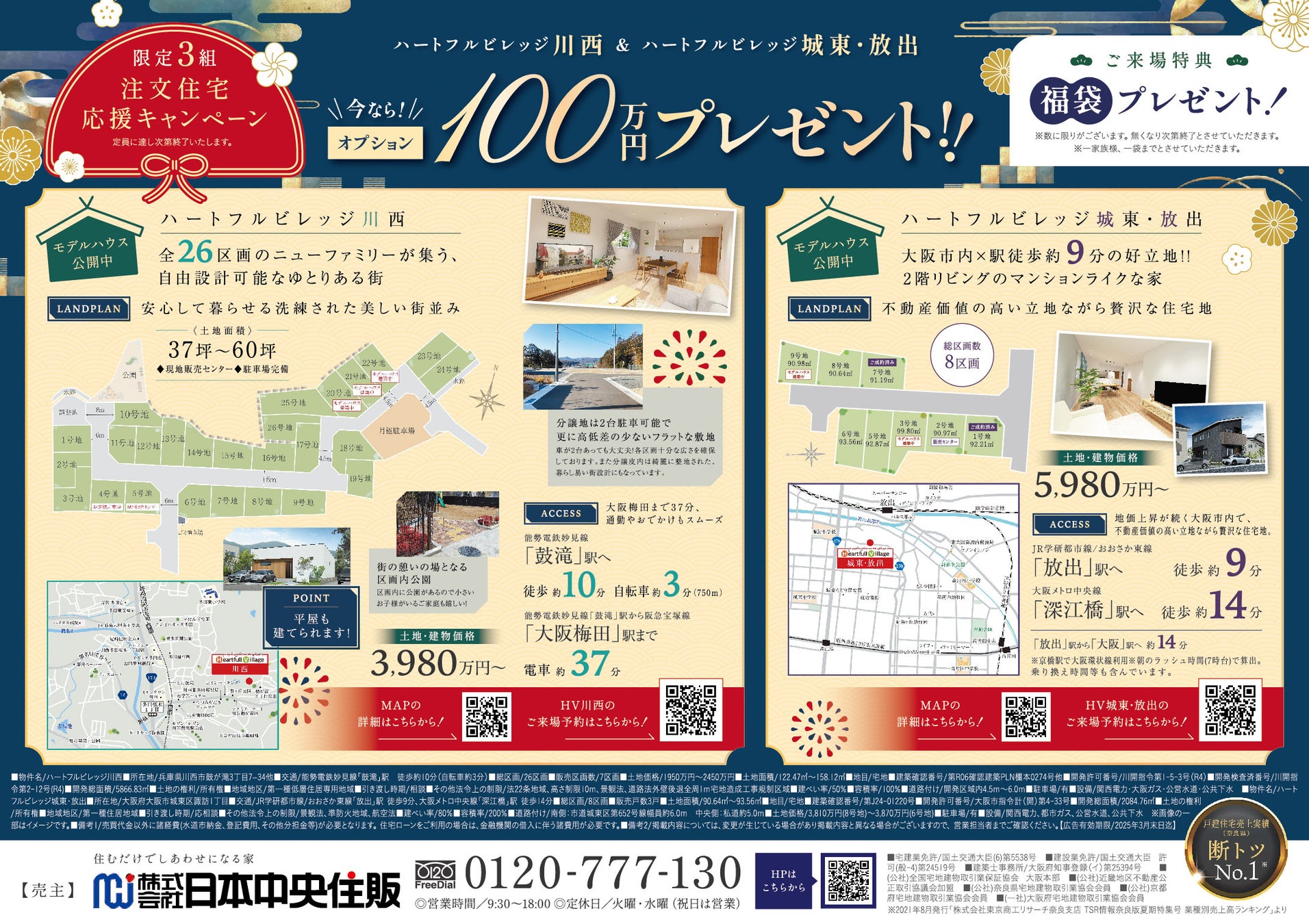 ハートフルビレッジ城東・放出、ハートフルビレッジ川西、注文住宅応援キャンペーン