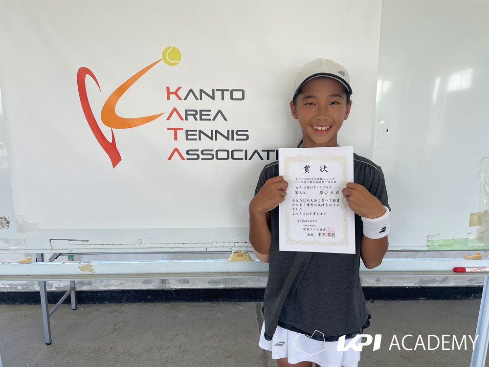 女子13歳以下シングルスで原口 礼選手が3位入賞しました。