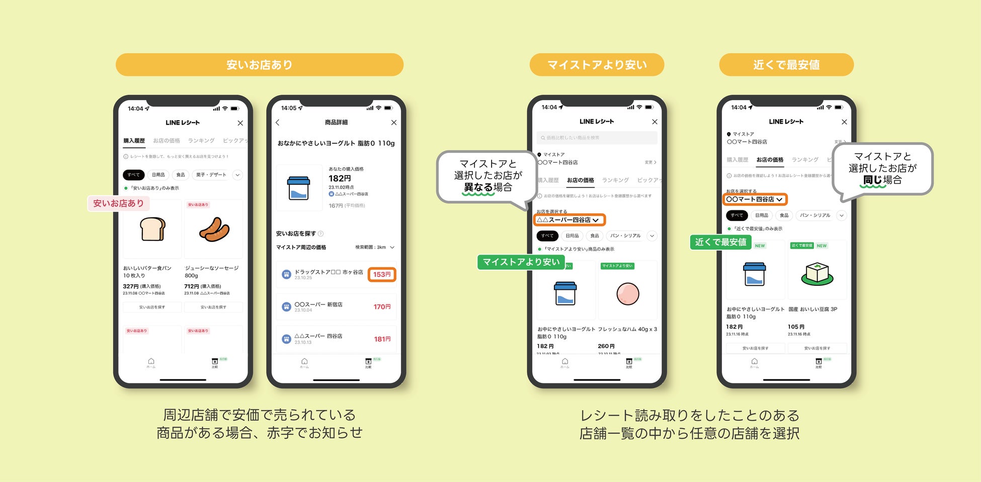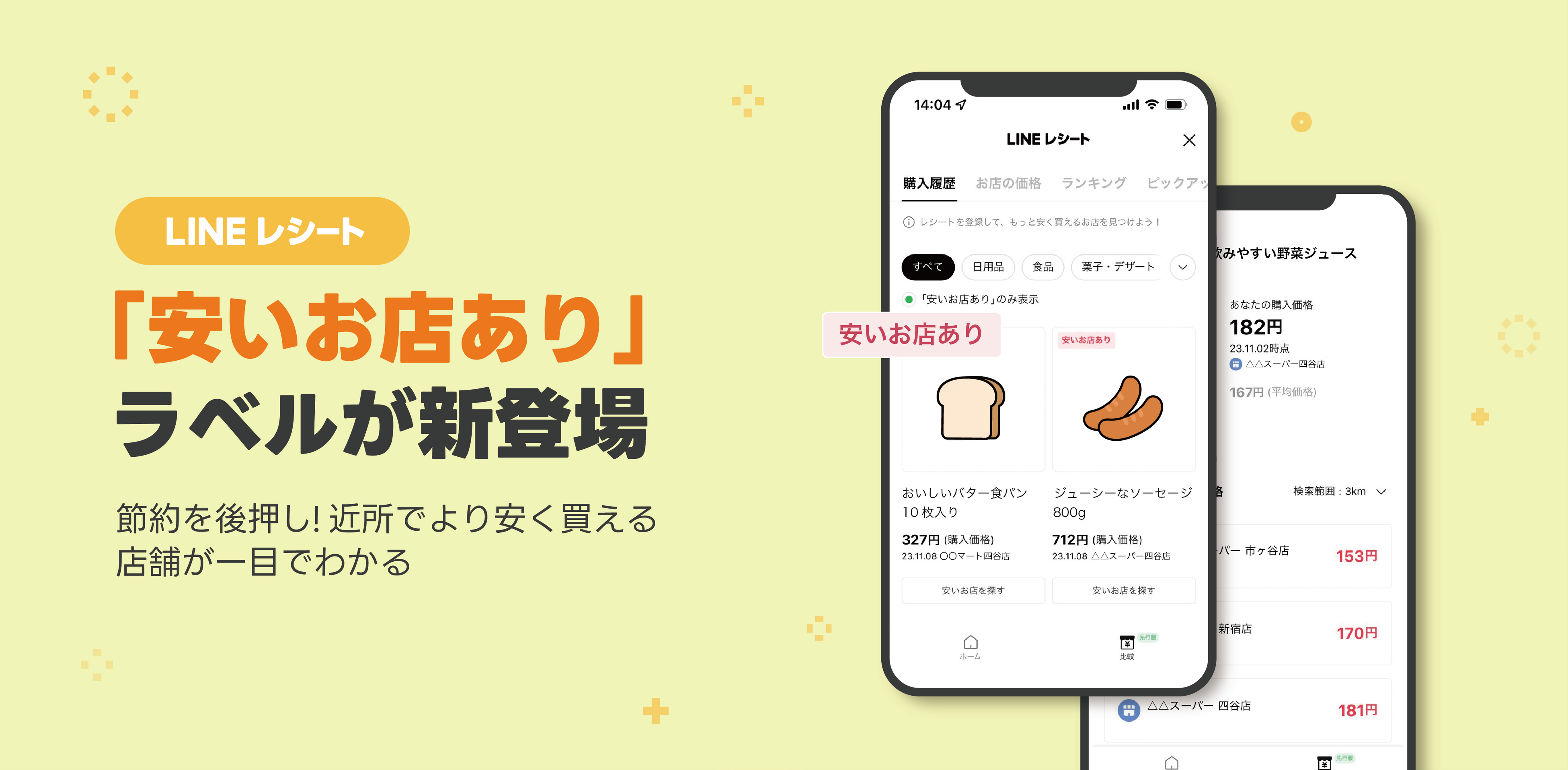 【LINEレシート】近所でより安く食品や日用品を買える店舗が一目でわかるように!「安いお店あり」などのラベル表示で節約を後押し