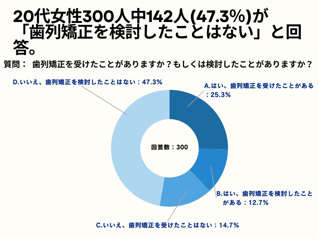 株式会社スマイルモアが「20代女性限定_矯正を考えたことあるかのアンケート」を行いました。