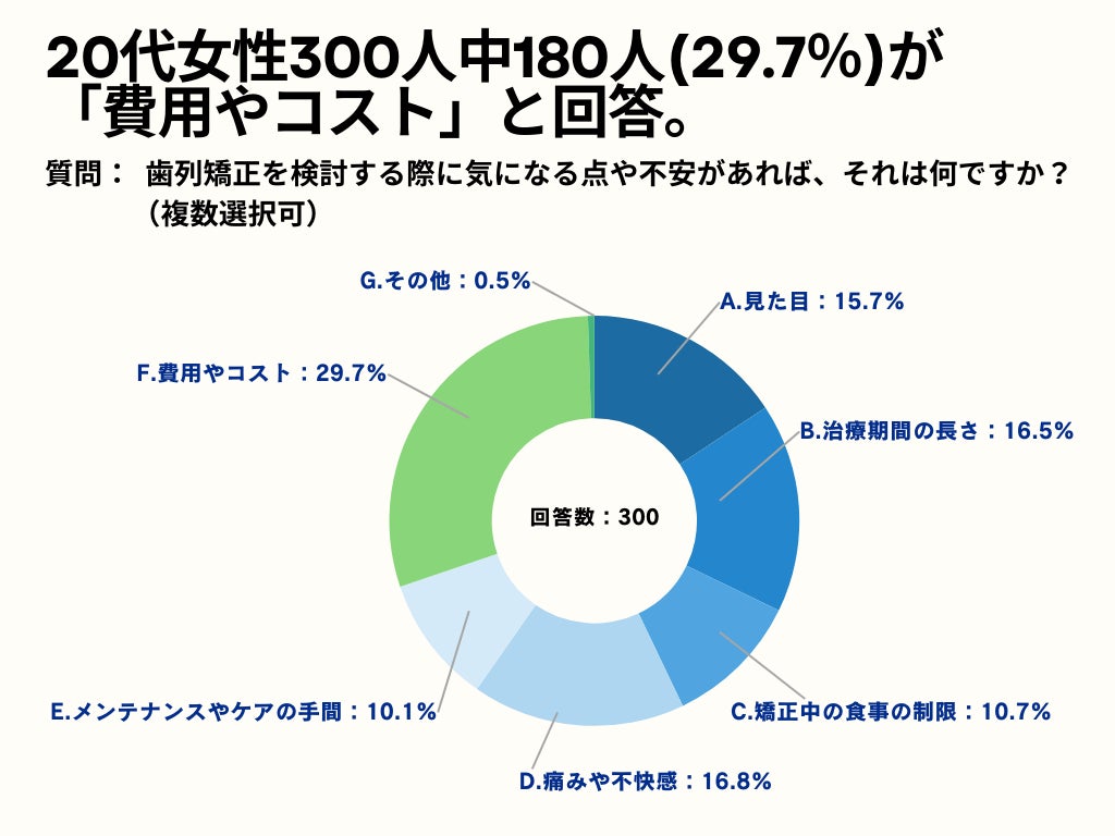 【質問3: 歯列矯正を検討する際に気になる点や不安があれば、それは何ですか?(複数選択可)】