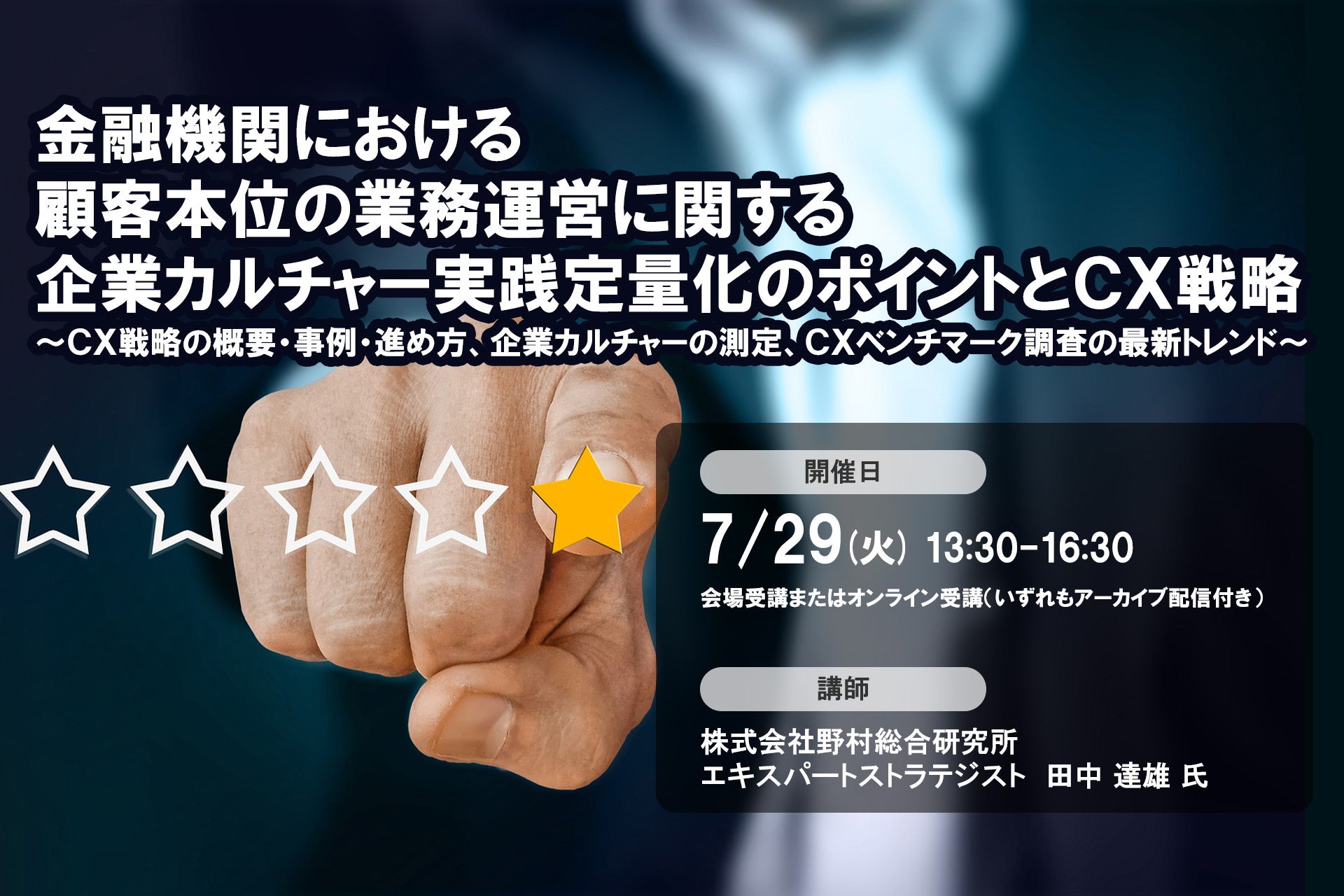 7月29日開催「金融機関における顧客本位の業務運営に関する企業カルチャー実践定量化のポイントとCX戦略」❘ セミナーインフォ