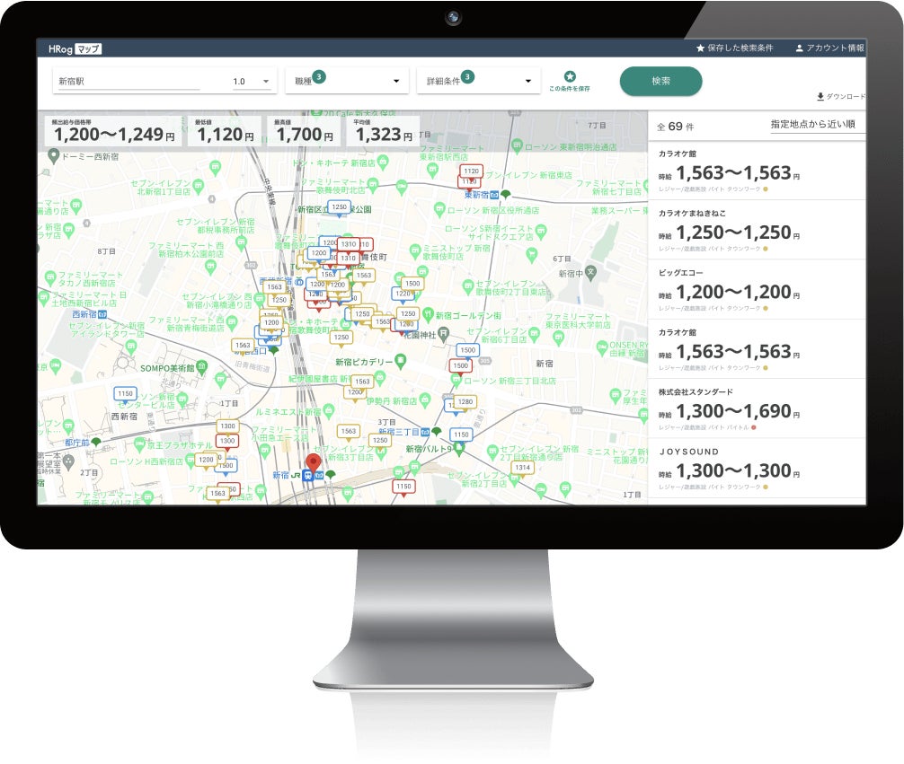 今回の調査で使用したように、「HRogマップ」では最新の求人情報を地図上にマッピングすることで、エリア毎の時給相場情報を可視化できます。これにより、職種やエリアの最適な時給を知ることや、データの裏付けを持った提案を行うことが可能です。