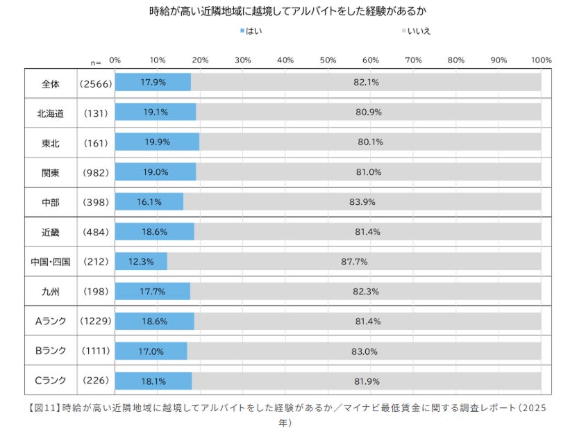 さらに、実際に時給が高い地域で「越境バイト」をした経験がある人の割合は、17.9%、約6人に1人にものぼりました。