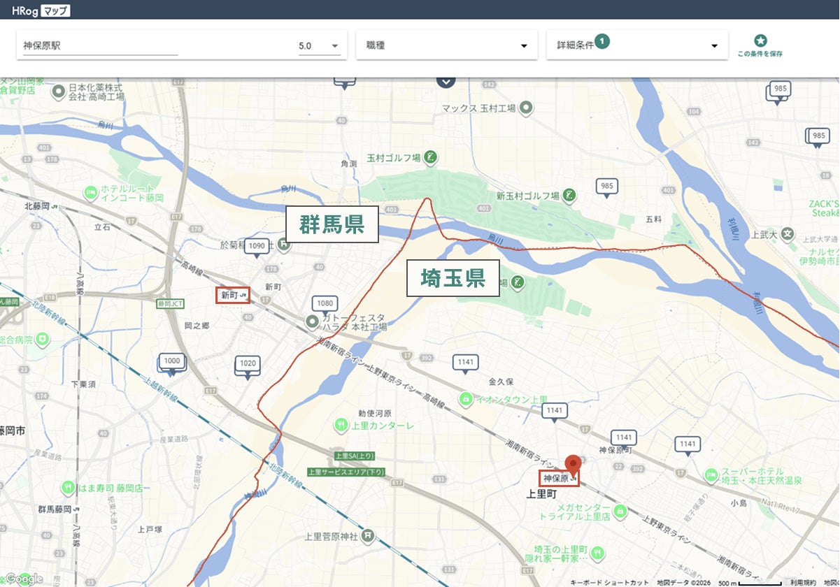 続いて「セブンイレブン」の時給について、埼玉県と群馬県の県境付近に位置するJR「神保原駅」周辺の店舗とJR「新町駅」周辺の店舗の募集時給を調査しました。