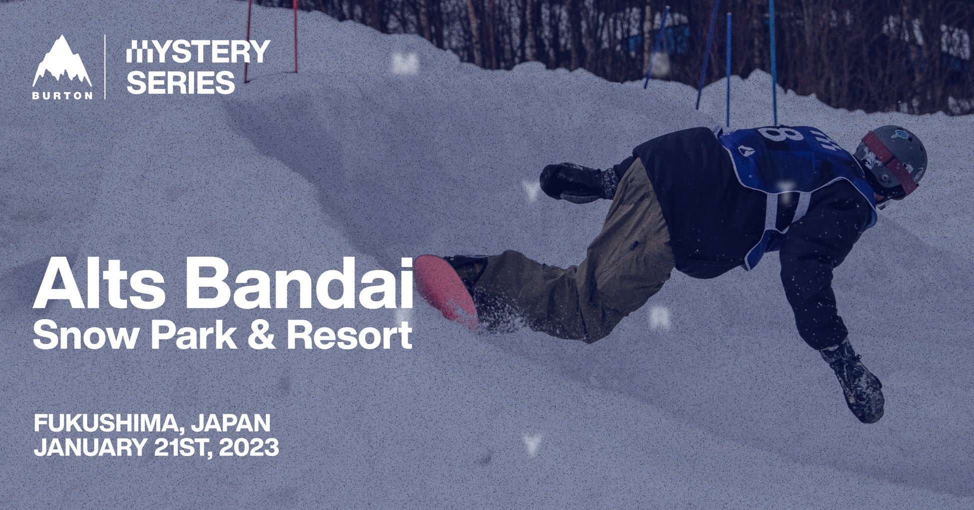 Burtonは、プロからビギナーまでのスキルの違いはもちろんのこと、年齢や性別に限らず様々な違いを尊重することであらゆるスノーボーダーが参加できる、グラスルーツスノーボードイベント「Burton Mystery Series」を、2022年12月から2023年5月まで、世界12ヵ国・全21回にて開催。そしてこの度、2023年1月21日(土)の福島県・星野リゾートアルツ磐梯での開催に向けて、特設サイト(https://altsbandaisnowparkresort.splashthat.com/)にてエントリーを開始いたしました。