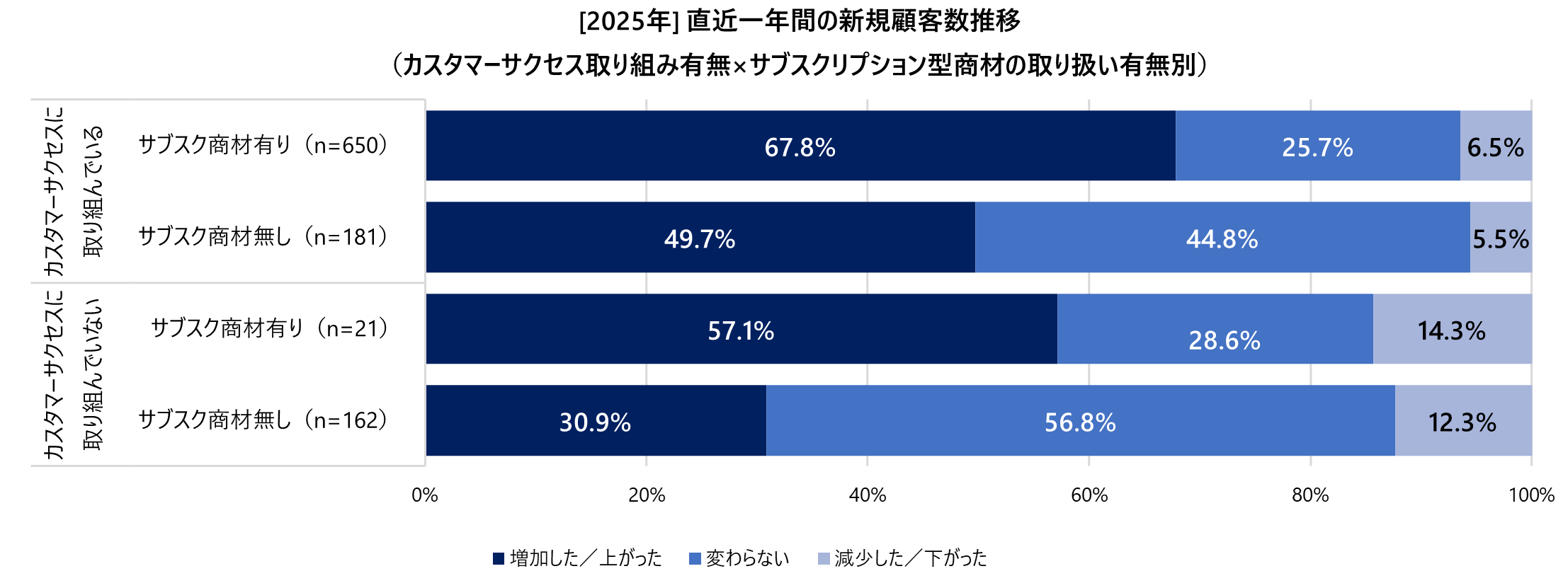・新規顧客数推移(カスタマーサクセス取り組み有無×サブスクリプション型取り扱い有無別)