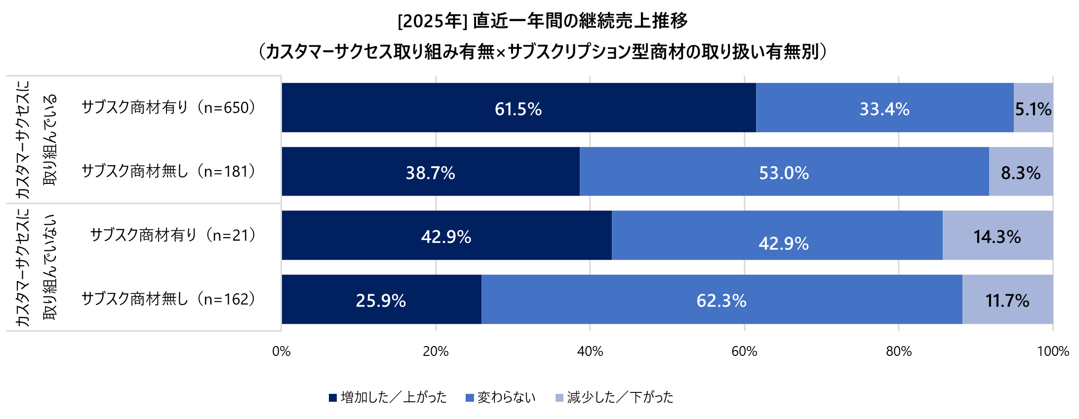 ・継続売上推移(カスタマーサクセス取り組み有無×サブスクリプション型取り扱い有無別)