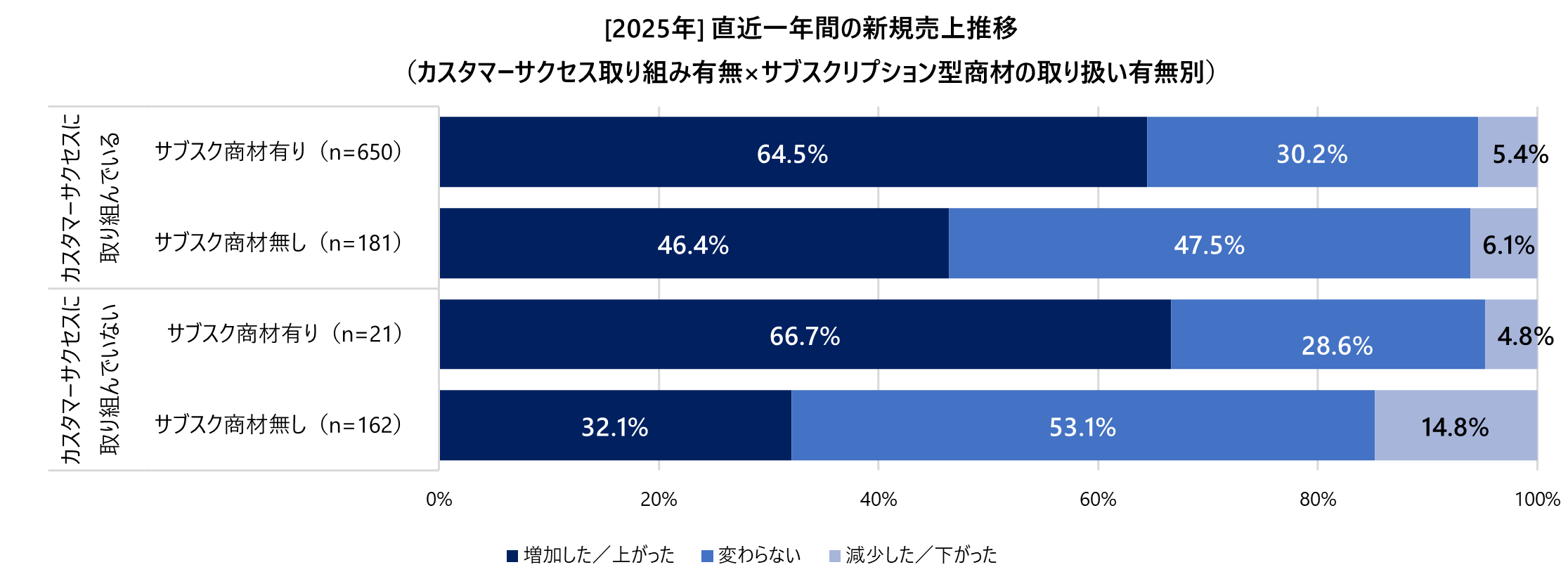 ・新規売上推移(カスタマーサクセス取り組み有無×サブスクリプション型取り扱い有無別)