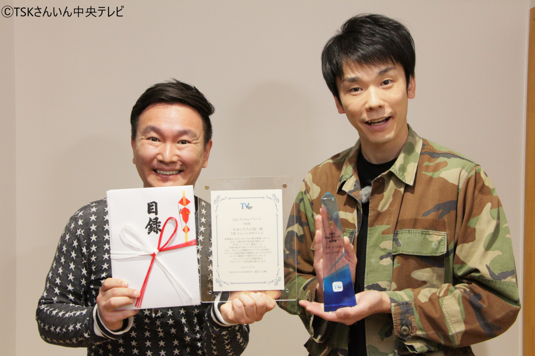 「TVerアワード特別賞ありがとうございます!めちゃくちゃすごい番組ラインナップに入れていただきスタッフ一同、驚きと感動を噛みしめております。“日本で一番人口の少ない島根県”に本社のあるローカル局TSKにとってもこんな大きなチャンスを頂ける時代になったんだと改めて実感しています。