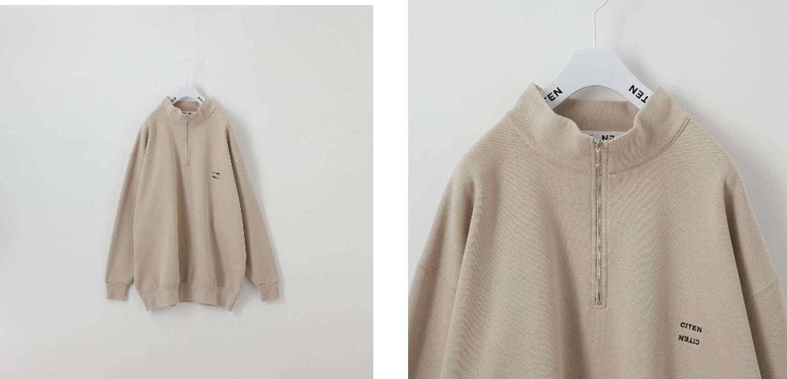大好評のCITEN刺繍ロゴスウェットのハーフジップデザイン。ジップのデザインにもこだわり、引手は90s感のにじみ出るボール形状のものを採用しています。