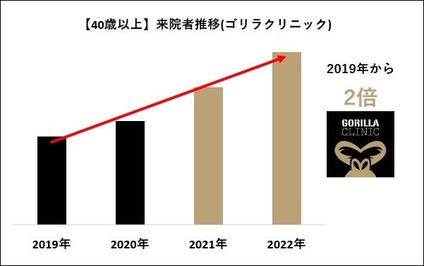 【多様化する“中高年男性”の美容意識】「40歳以上の男性来院者数」コロナ禍の前後(ここ3年)で2倍増(ゴリラクリニック調べ)