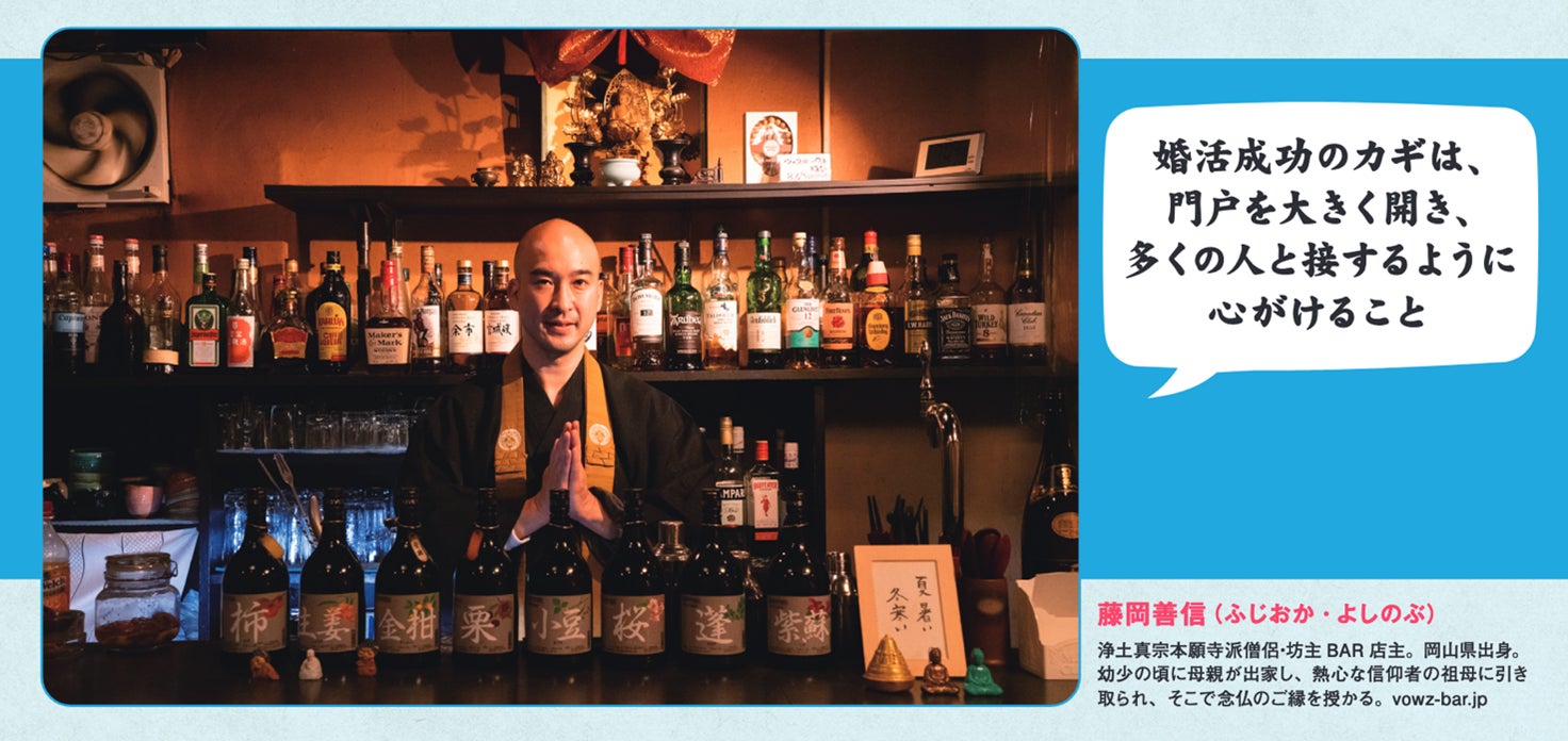 掲載最新号のテーマは「お坊さんに学ぶ、煩悩の果てにある恋愛と結婚」と題し、現役の浄土真宗のお坊さんでありながら、東京・四谷「坊主 BAR」のマスターでもある藤岡善信さんに恋愛を結婚について語っていただき、「今年の恋愛を現す漢字」も考えていただきました。