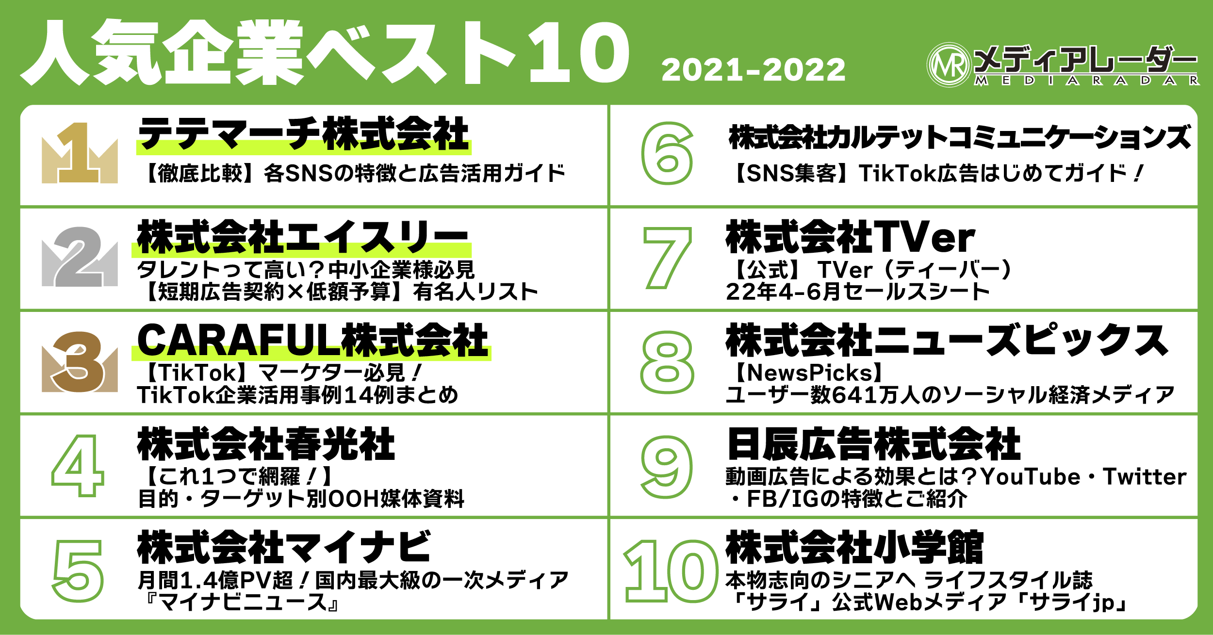 - 2021-2022年のメディアレーダーにおける人気企業TOP3をご紹介!
