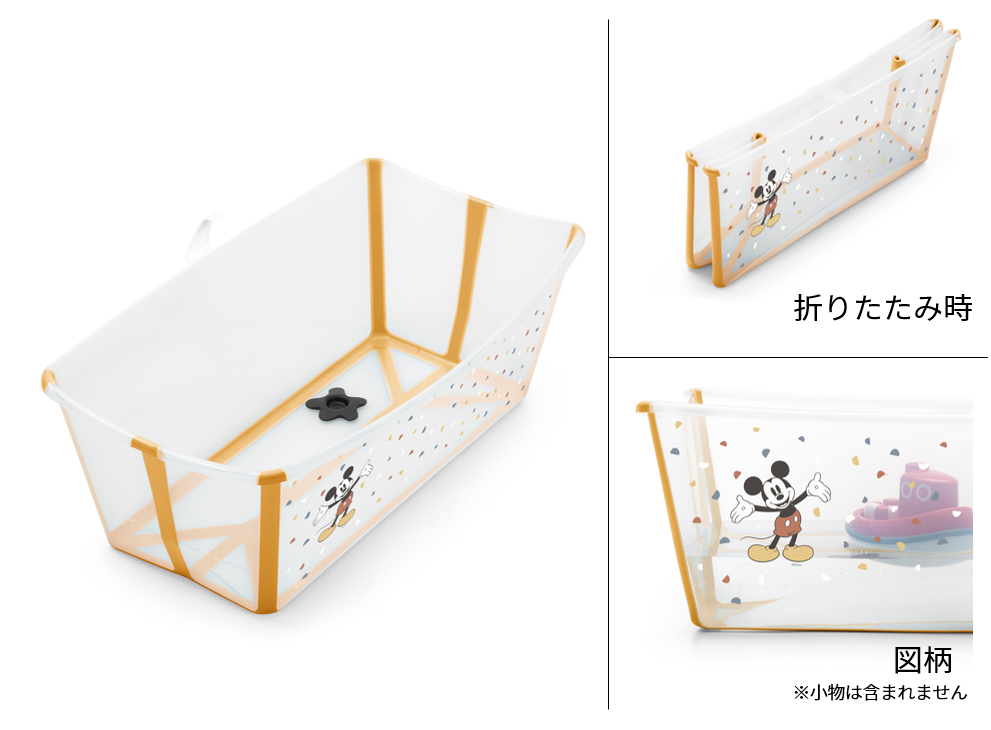 北欧発ベビーブランド「ストッケ」から、赤ちゃんの沐浴に最適なベビーバス「フレキシバス」の新製品!待望のミッキー セレブレーション柄と固定用スタンドが新登場。