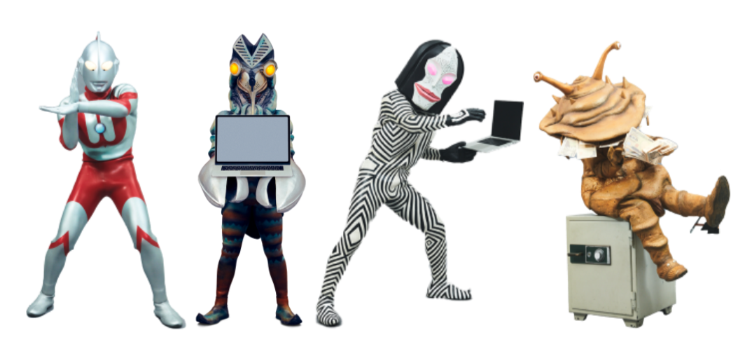 お馴染みのウルトラマンや怪獣たちが現代オフィスで活き活きと活躍する映像は必見です!