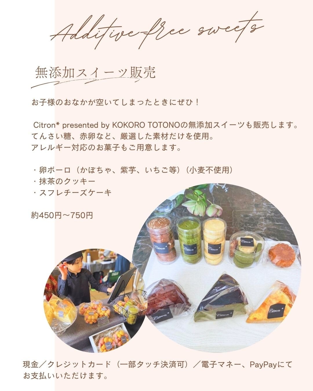 Citrion produced by KOKORO TOTONO の無添加スイーツを会場内で販売することになりました!
