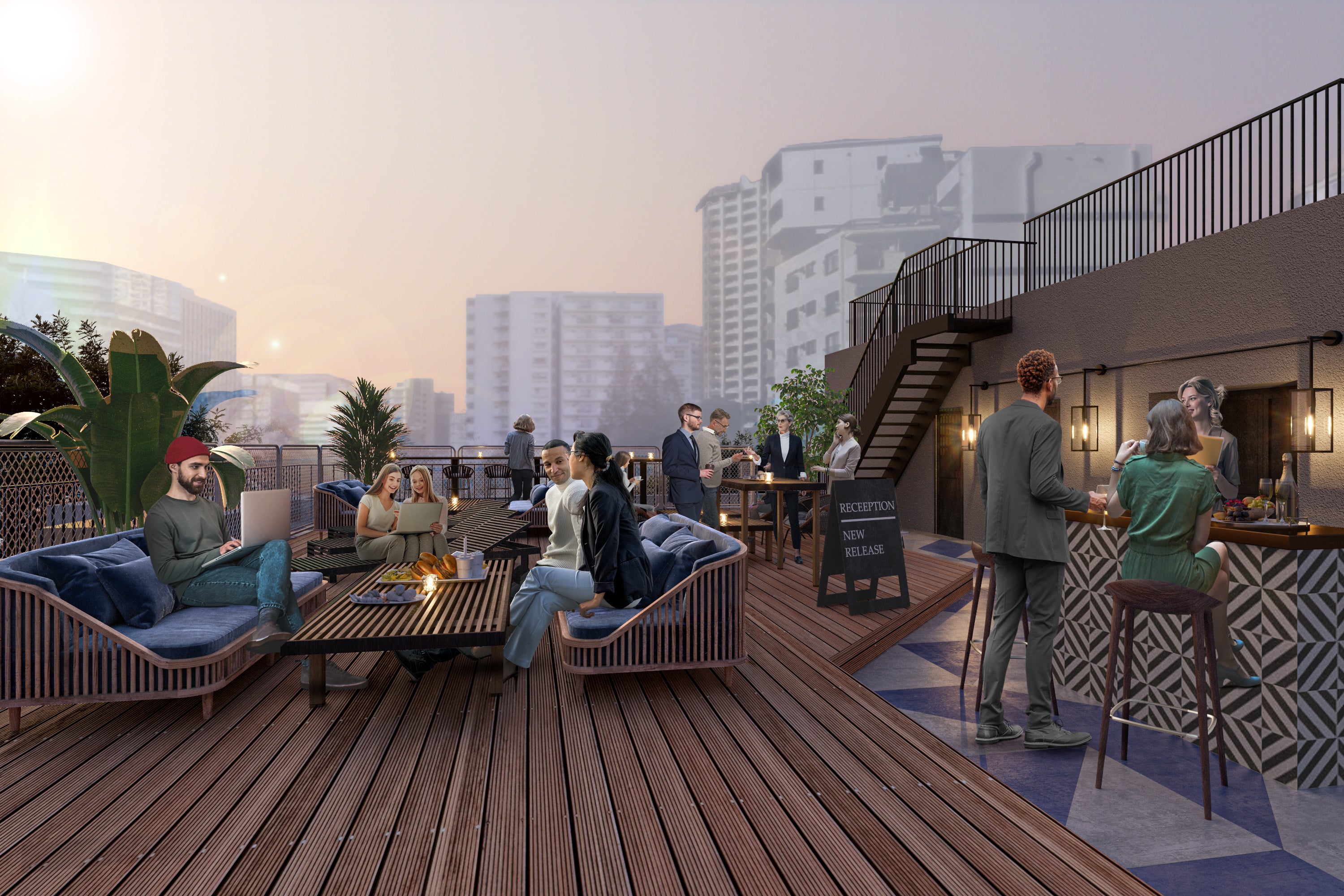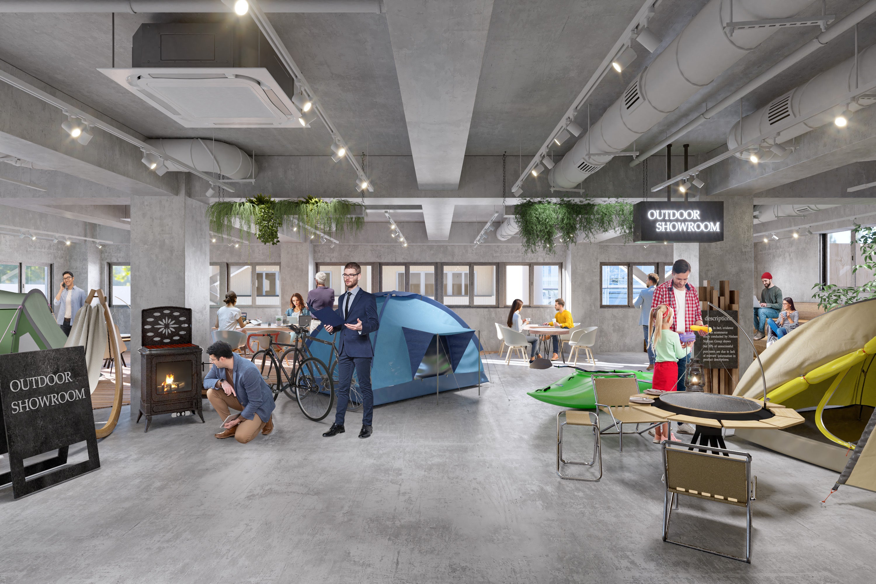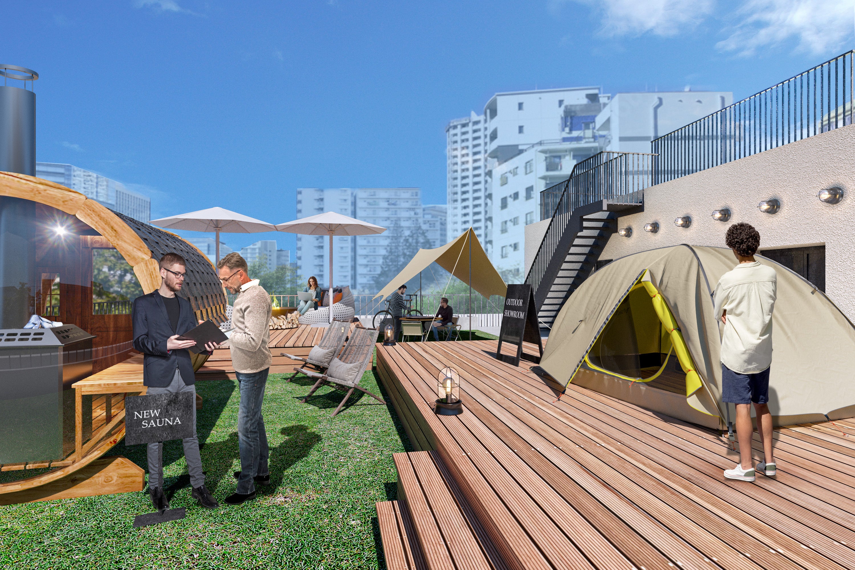 ショップまたはオフィス区画とセットでご契約が可能なプレミアムオプションプラン。約30㎡のコンパクトなプライベートルームと専用ルーフトップが利用でき、屋外ショールームや社内外のコミュニケーションスペースとしてもご活用いただけます。