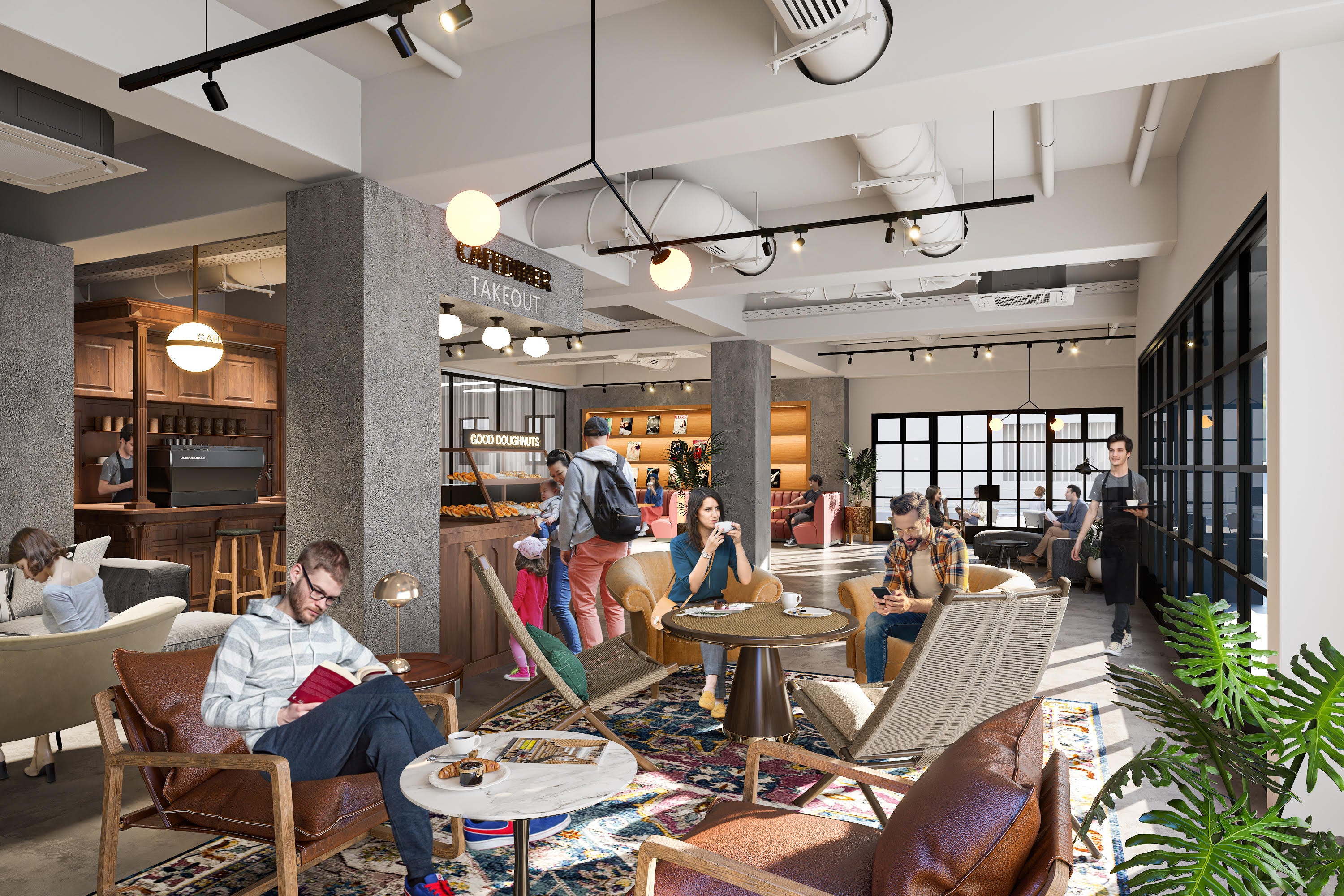天井高3.2mの開放的な空間は、専用のテラススペースを活かしたカフェ・レストラン、ライフスタイルショップなどのご利用に最適です。*先行して内覧受付中となります。