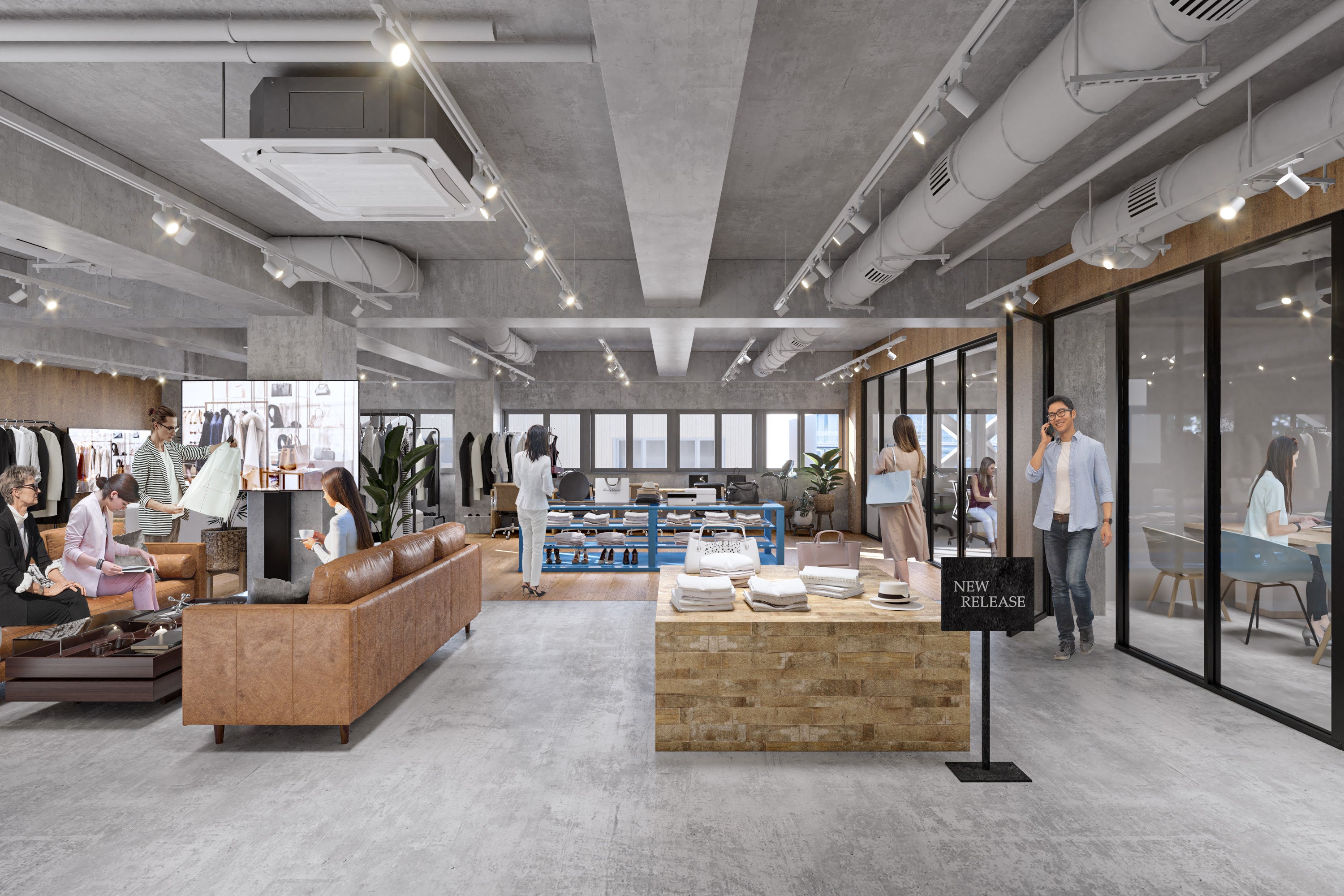 200㎡以上の広々とした空間は、オフィスやショールームの他、水回りの内装造作も自由に可能で、美容室やサロン等のサービス店舗にも対応しています。
