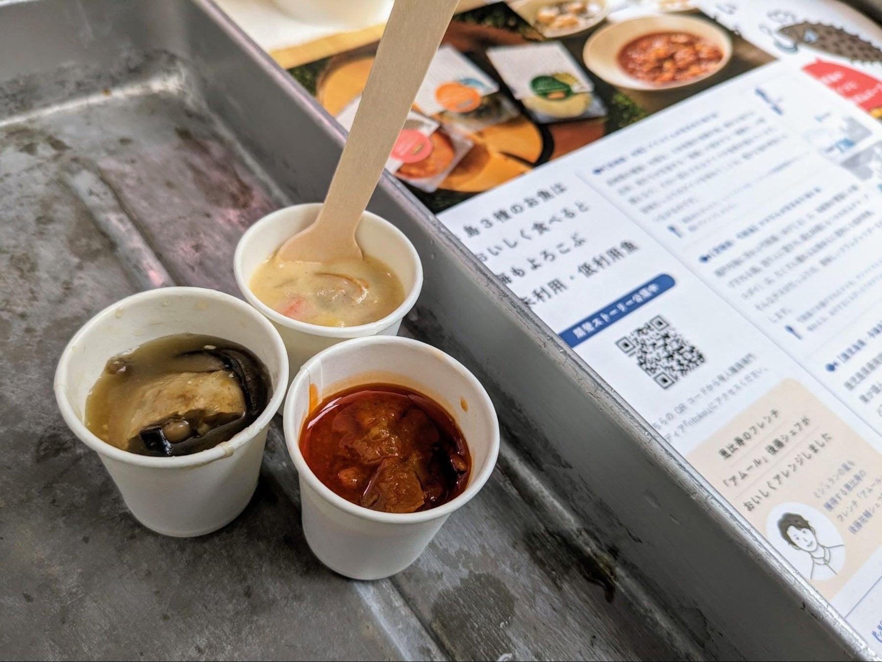 【開催報告】サカナバッカ、磯焼けを起こすアイゴとチヌ、低利用魚テングハギを活用した3種の新スープをテスト販売。海の課題改善につなげたい