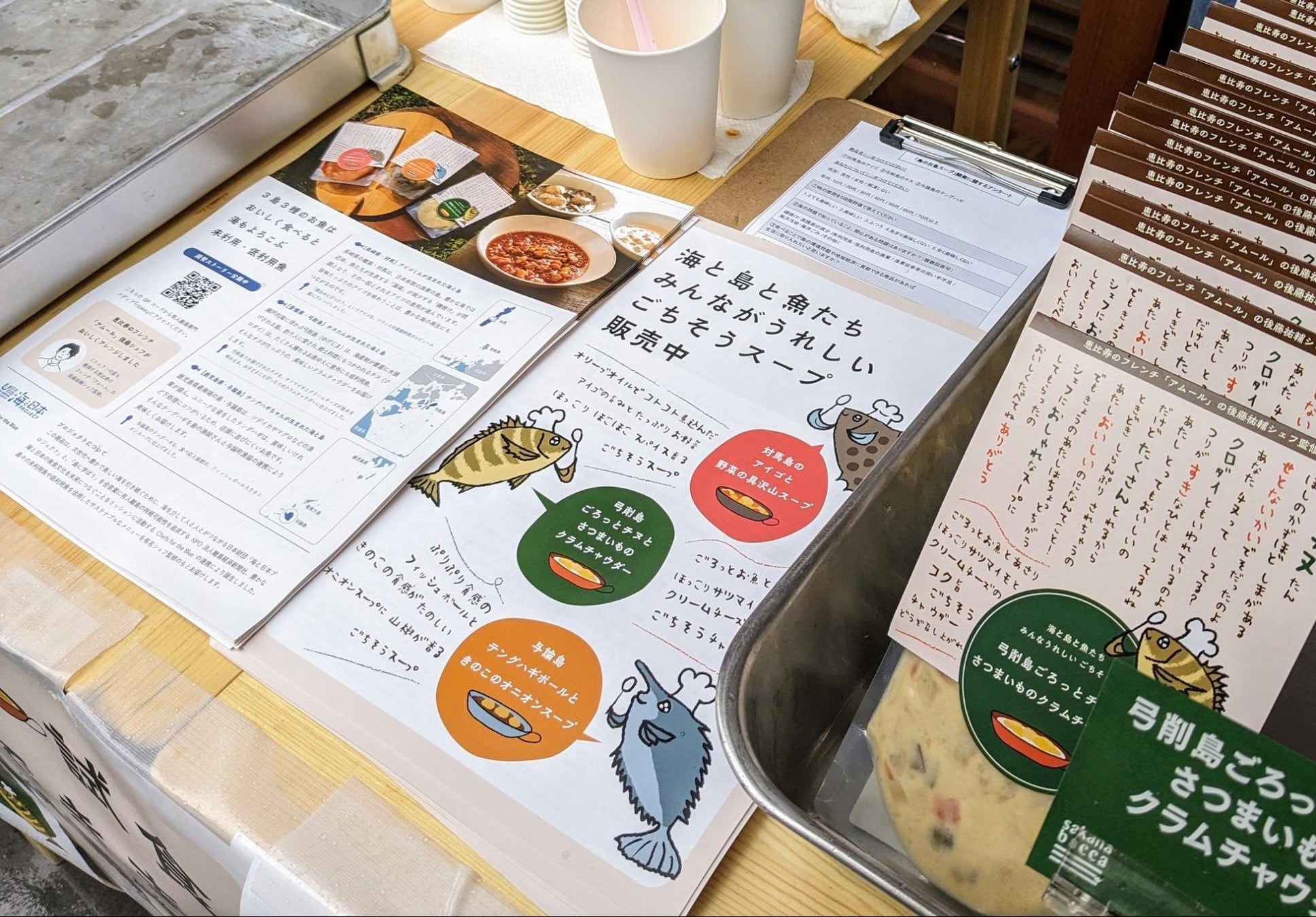 離島経済新聞社 ✕ Chefs for the Blue ✕ サカナバッカ共同開催。[長崎・対馬島のアイゴ][愛媛・弓削島のチヌ][鹿児島・与論島のテングハギ]3島3種お魚スープを来店客へ試食体験
