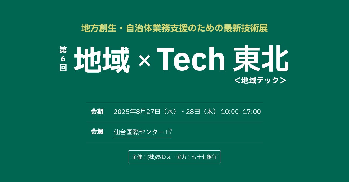 2025年8月27日(水)・28日(木)に仙台国際センターで開催される「第6回 地域×Tech 東北」に、カゴヤ・ジャパン株式会社(本社:京都府京都市中京区、代表取締役社長COO:岡村 武)が初出展いたします。