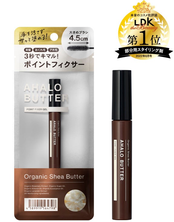 *1 アハロバター ポイントフィクサー ジェルと比較して *2 シア脂(保湿) *3 アルガニアスピノサ核油(保湿) *4 アーモンド油(保湿) *5 ユーカリプツスラジアタ葉/茎油(保湿) *6 ローズマリー葉エキス(保湿) *7 ラベンダー花エキス(保湿) *8 LDK the Beauty 2022年6月号 部分用スタイリング剤部門 *9 2020年10月末時点