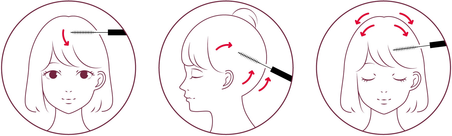 前髪、おくれ毛、アホ毛などの部分的に気になる部分にブラシをあてて、抑えたい方向へ滑らせるだけで簡単にまとまります。