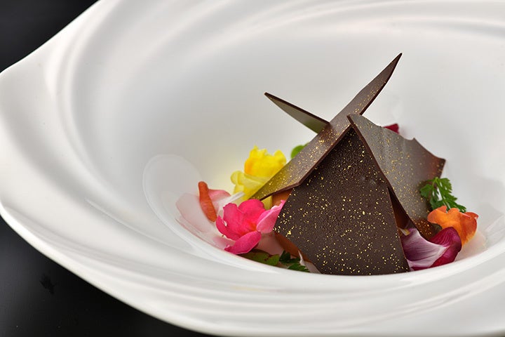 スターダストの煌めきを再現し、氷のプレートでご提供する第一の前菜「イセエビのセビーチェ」は、旬を迎えて甘みを増したイセエビを、沖縄県産の生乳で作られたクリーミーなヨーグルトと沖縄を代表する柑橘・シークヮーサーのソースで。メインディッシュは、きめ細かな肉質と濃厚な旨味を誇る高品質なブラックアンガス牛フィレ肉のポワレに、縁起の良い「紅白」を演出した赤ビーツのソースと芳醇なトリュフのソースを添えてご用意いたします。