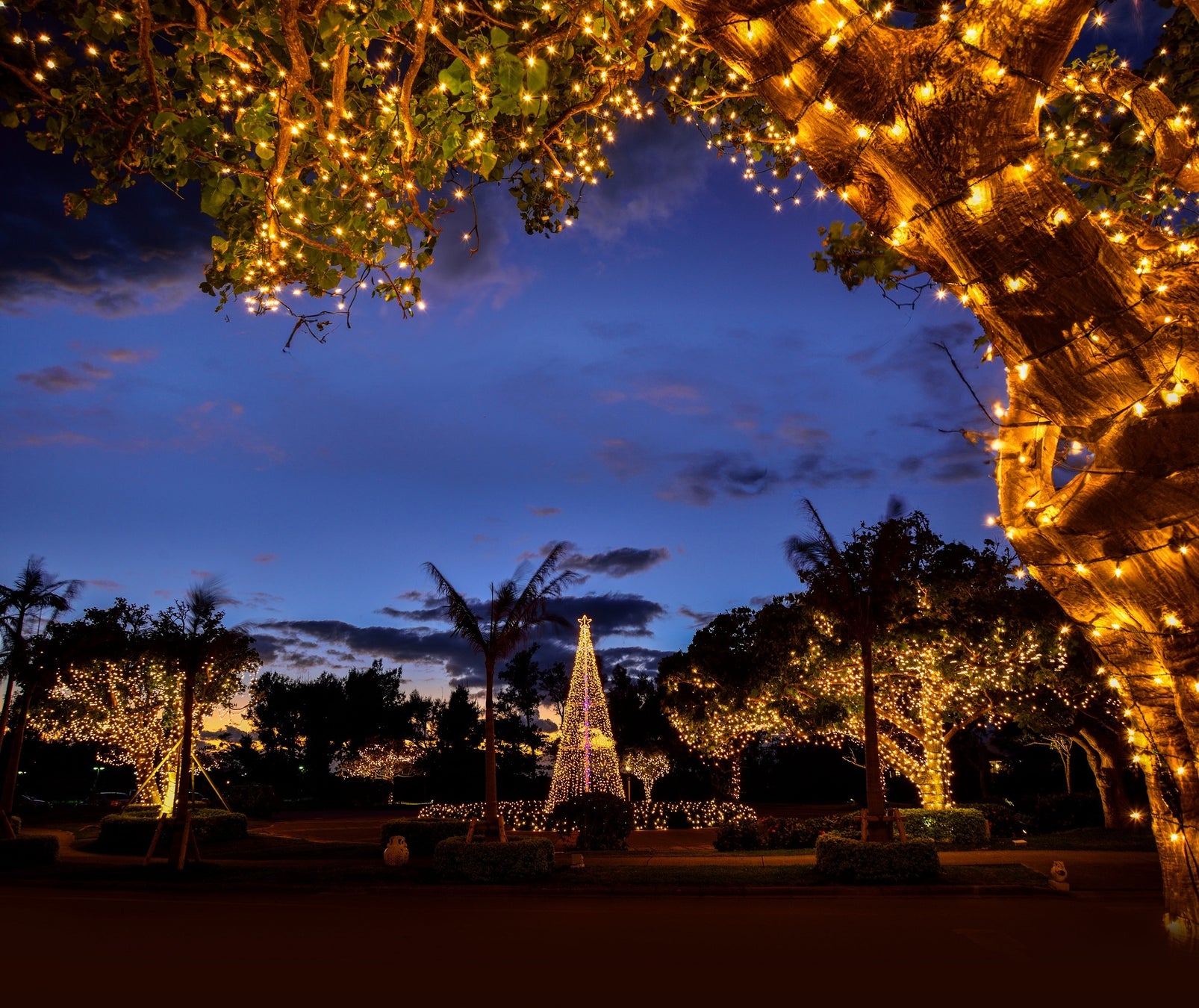 ザ・ブセナテラスで過ごすセレブレーションシーズン。真冬でも鮮やかに咲き誇る花々、煌びやかな光をまとったヤシの木、空を仰ぐと瞬く無数の星。大切な方と華やかなひと時をお過ごしください。