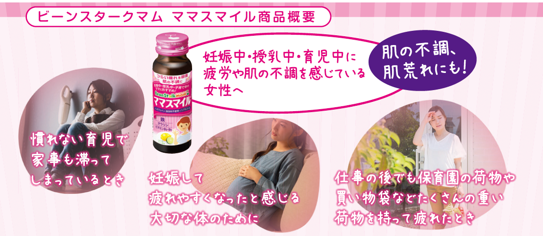 妊娠中・授乳中・育児中のつらい疲れや肌の不調を改善できる医薬部外品の栄養ドリンク。