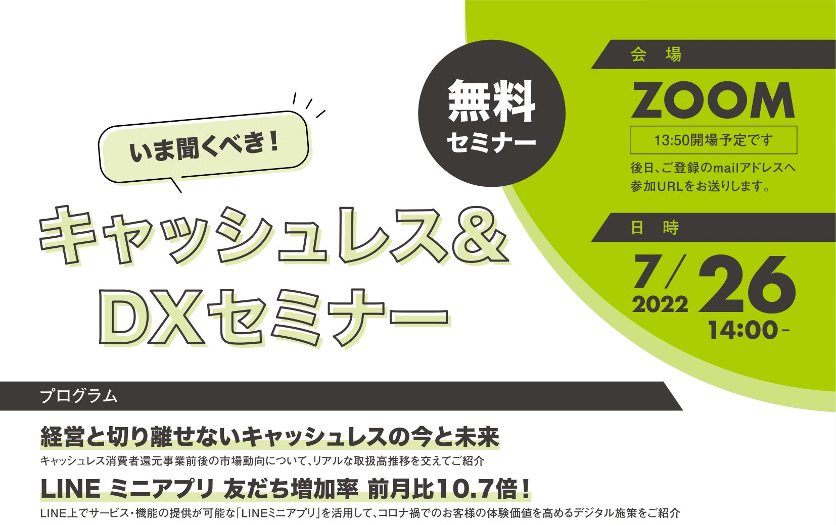 内容:今後のキャッシュレス業界の展望やLINEミニアプリを使ったマーケティング手法の事例紹介など
