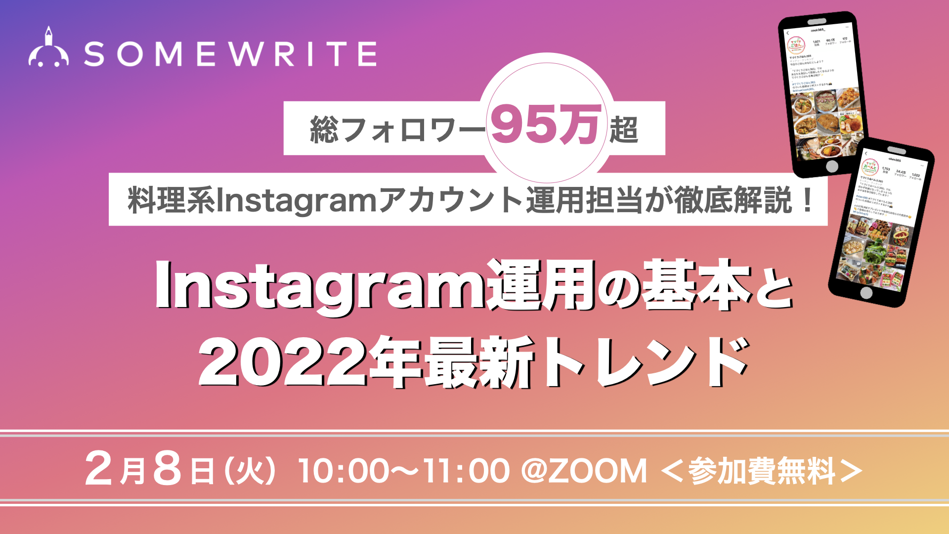 サムライト、総フォロワー95万超の料理系アカウント運用担当がInstagram運用の基本と2022年最新トレンドを解説するウェビナーを開催(2月8日)