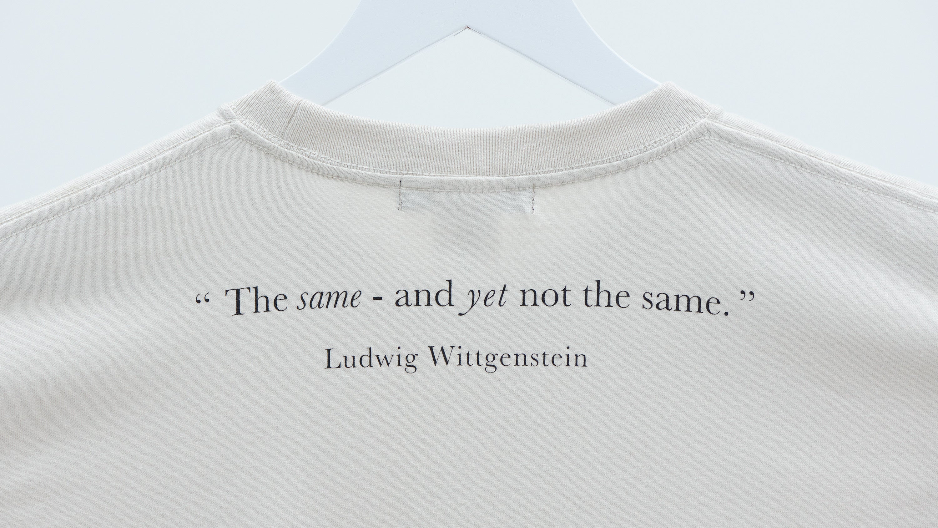 背面の首元には、この図形を取り上げて人間の知覚について論じた哲学者・ウィトゲンシュタインの一節(”the sameーand yet not the same.”)が引かれています。