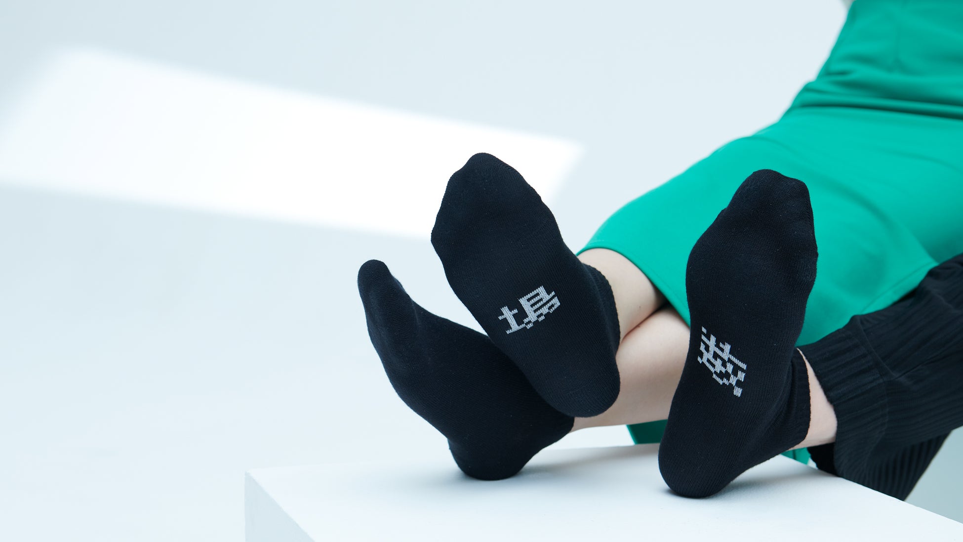 この二種類の靴下は、あなたが実際に履いて「踏む」ことで完成します。どういうこと?と思った方は、デザインされた漢字をご覧ください。薄手の生地で、夏場でもさらりと着用できます。