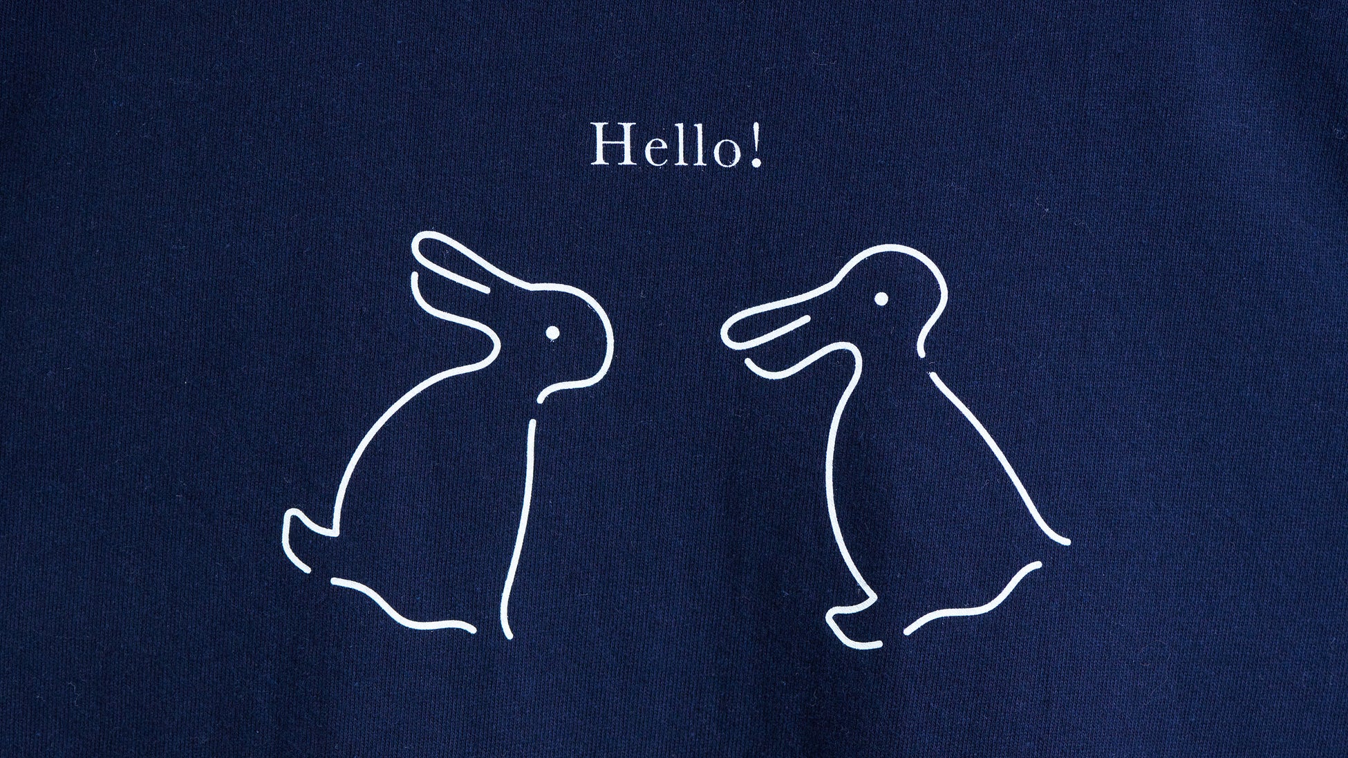 見方によってはウサギにも、アヒルにも見える「多義図形」をモチーフにした、丈夫でなめらかな生地のビッグシルエットTシャツ。明るくソフトな3カラー展開で、シンプルにパンツと合わせたり、プリーツスカートにタックインしたりするのもオススメです。
