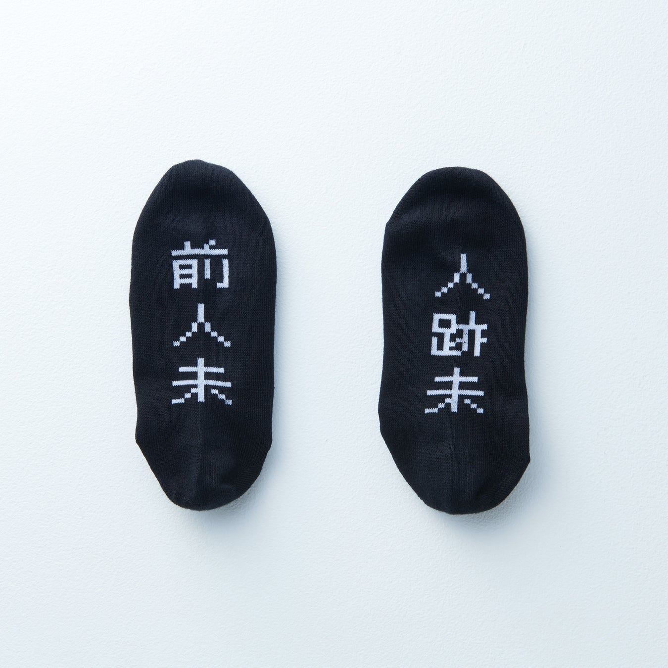 靴を脱がなければ、シンプルで使いやすいブラックの靴下。「いま自分は場数を踏んでいるんだ」。「私はいま、前人未踏の場所に立っているんだ」……と思うと、なんだか勇気が出るかも? 友だちの家にあがったとき、飲み会で座敷に座ったときにはこの靴下でひと笑いもらっていきましょう。