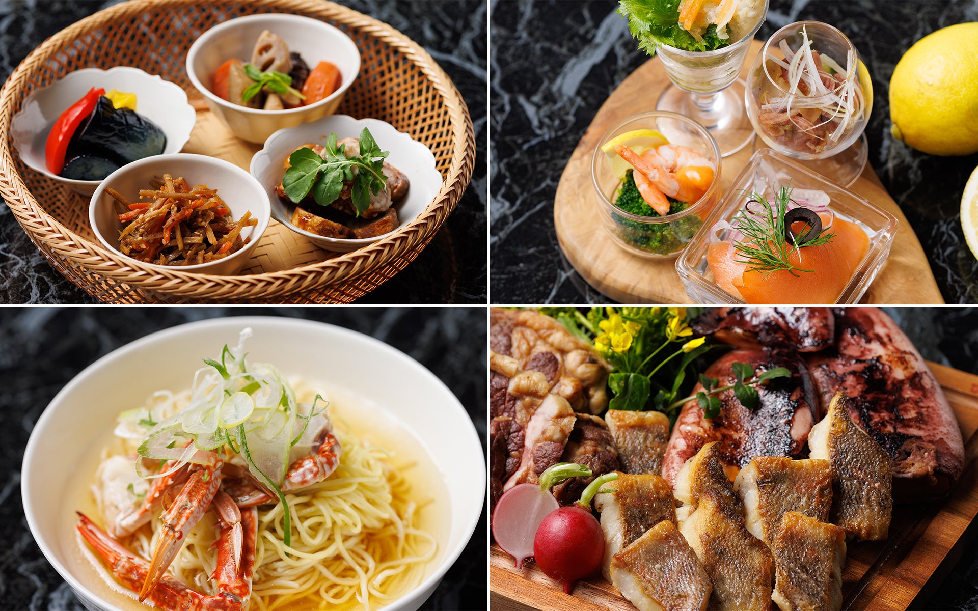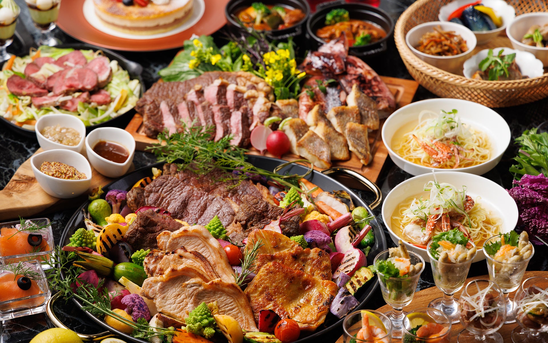 武藏窯で豪快に焼き上げられたグリル料理に思わず舌鼓。冬の味覚の数々のメニュー。彩も華やかなスイーツビュッフェ、限定料理の“海の幸がつまった味噌とチーズのコク深グラタン”と“きなこぷりんと和スイーツのモダンパフェ”などがお楽しみいただけます。