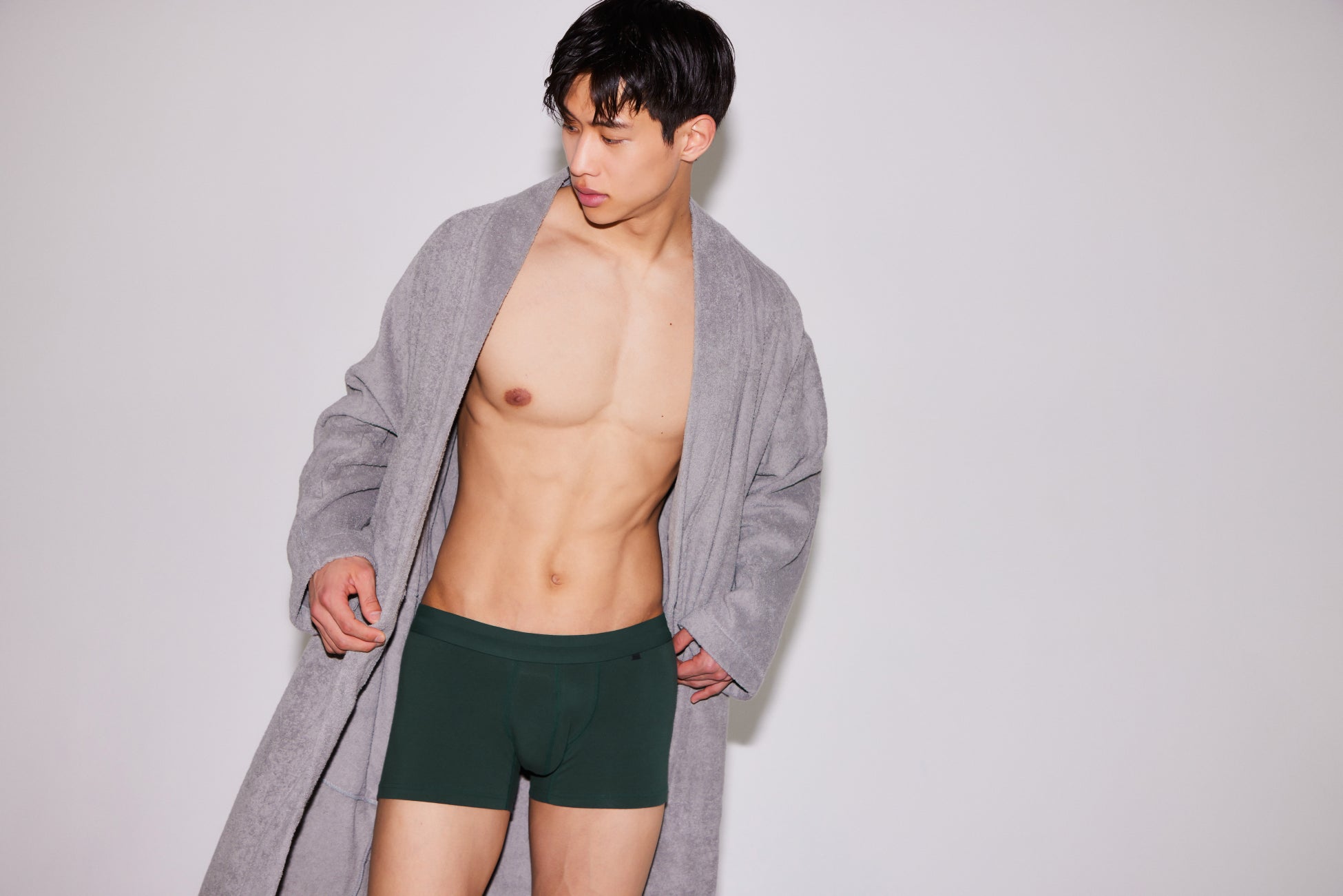『TOOT MIDDLE COTTON』はオンオフ問わず、就寝時やスポーツでの活動時はもちろん、スポーツジムやサウナの更衣室などで人目を気にせず、様々なスタイリングにも合わせやすいカラー展開。初回展開は使い勝手のよい5色をご用意(ブラック、ワイン、ネイビー、ダークグリーン、ダークグレー)。