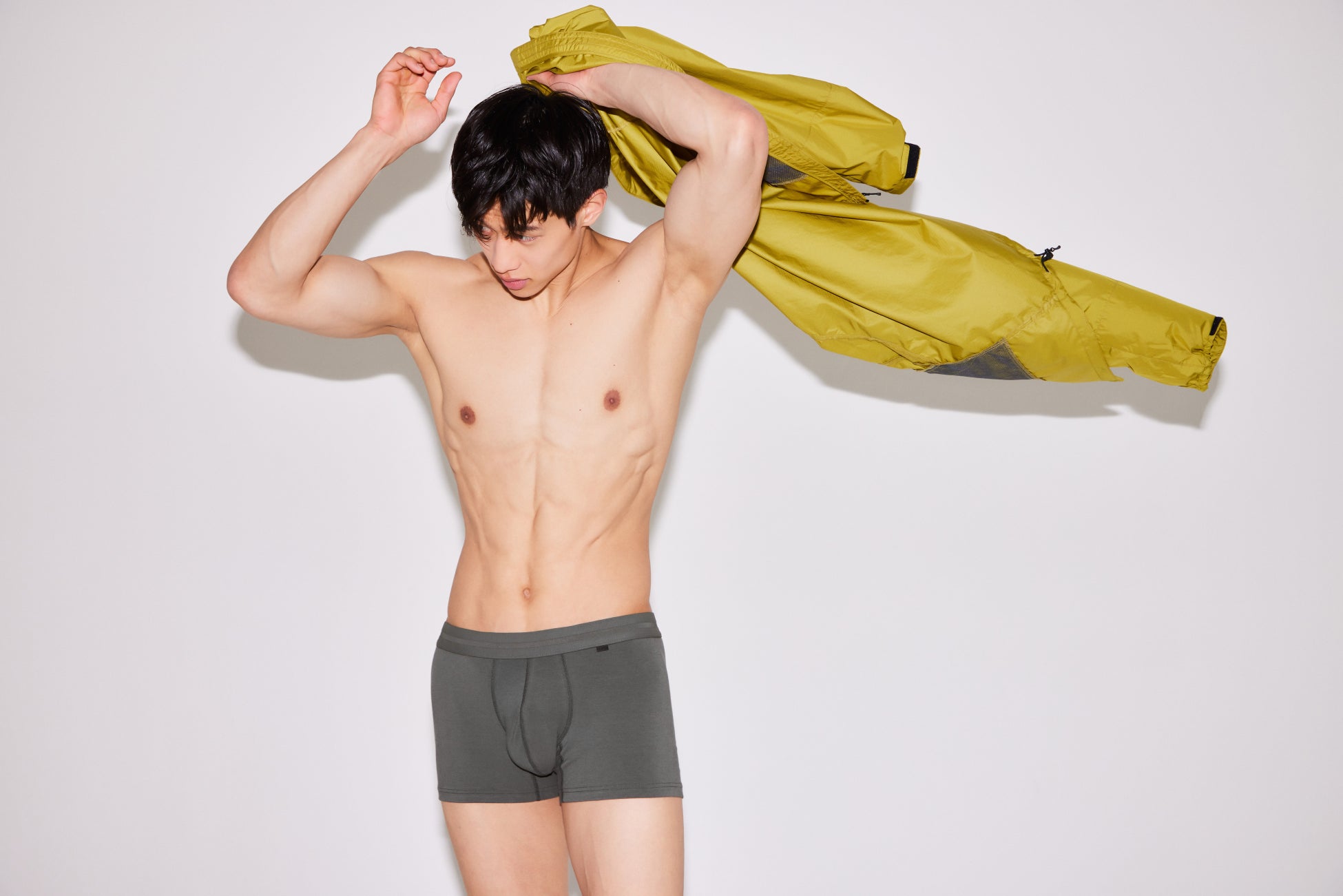 また、これまでほとんどの製品のウエストゴムに織り込まれていた「TOOT」ロゴを敢えて採用せず、より無色に近いソリッドなルックスにすることで、究極にシンプルな見た目でこれまでのTOOTにない新しいライズの快適な穿き心地を実現しました。