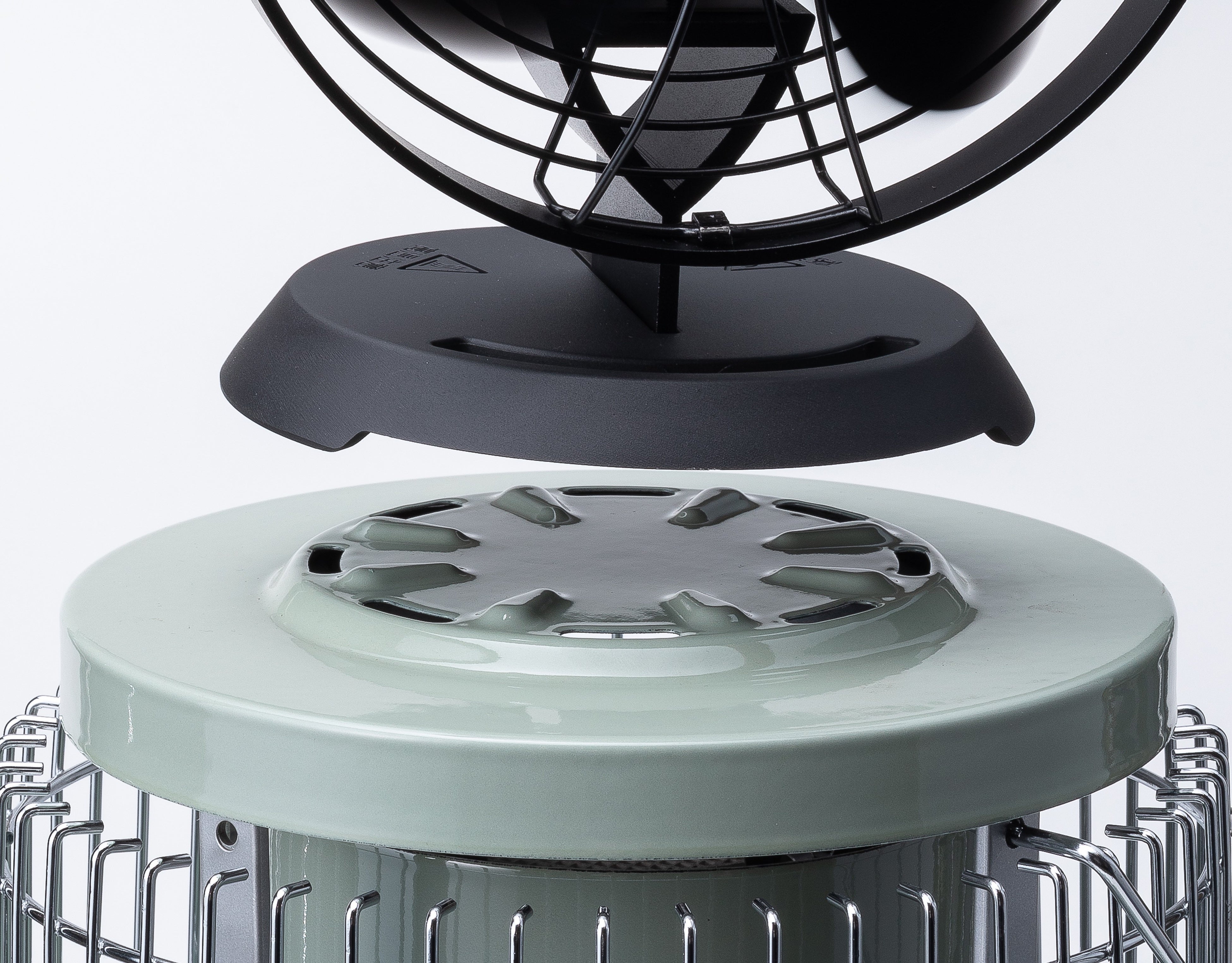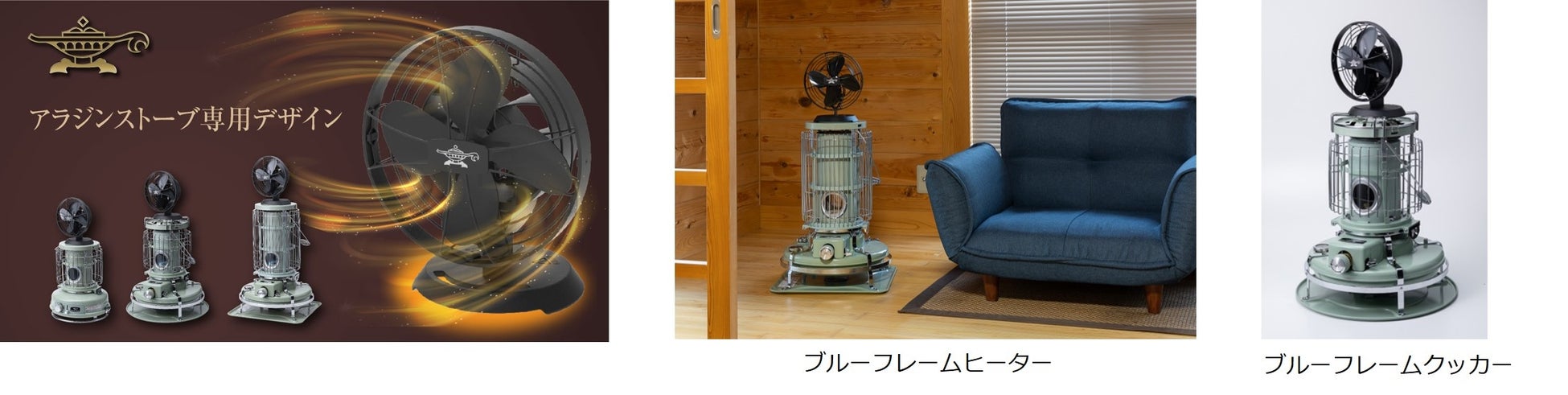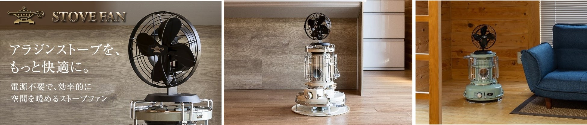 冬のキャンプやアウトドアシーンで欠かせないアイテムなのが石油ストーブやガスストーブ。しかし、「アラジン ブルーフレームヒーター」や「センゴクアラジン ポータブル ガス ストーブ」は対流式のため、暖気が天上付近にたまります。また従来の一般的なストーブファンだとアラジンストーブの天板に合うものがなく、十分な効果を発揮させるためには専用のストーブファンが必要でした。伝統のアラジンストーブを“もっと快適に使ってほしい”そんな想いから生まれたのが、『アラジン ストーブファン』です。
