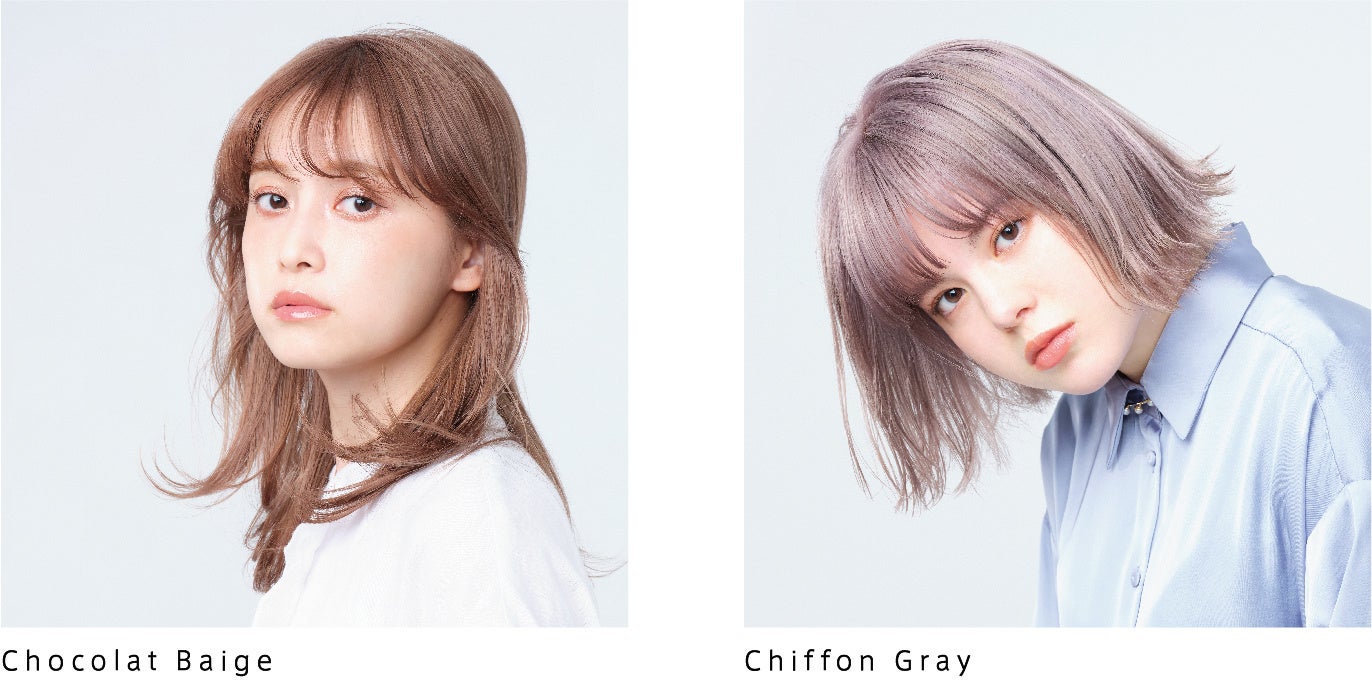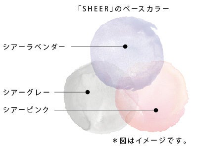 ハイトーンの黄みをコントロールする上で欠かせないシアーラベンダーを軸に、やわらかさを表現するシアーピンク・シアーグレーを掛け合わせた新たなベースカラー。補色とやわらかな色みを幾重にも重ね合せることで、力強くも曇りのないシアーな発色を実現します。