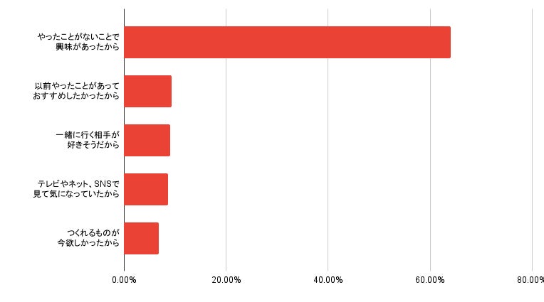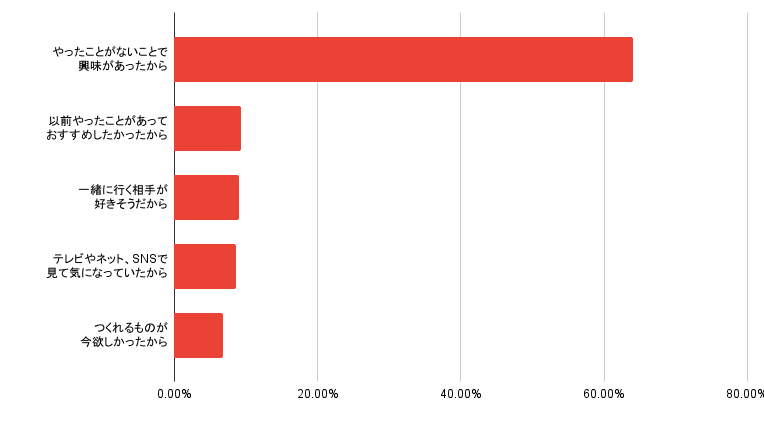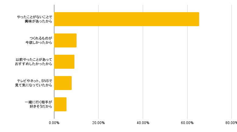 「友達」と、ならびに「パートナー」と、ともにやったことがない新しいものづくり体験をしたいという声が6割以上を占めています。