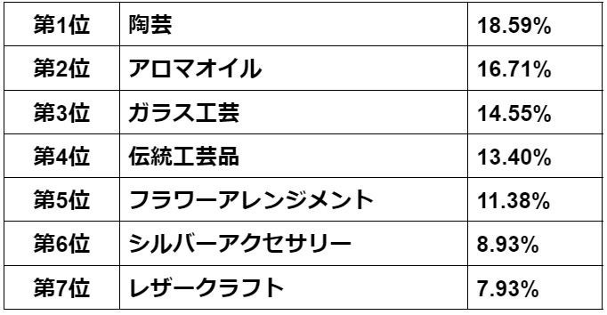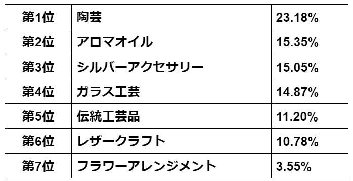 1位と2位は変わらずに、「陶芸」に「アロマオイル」が続く結果となりました。