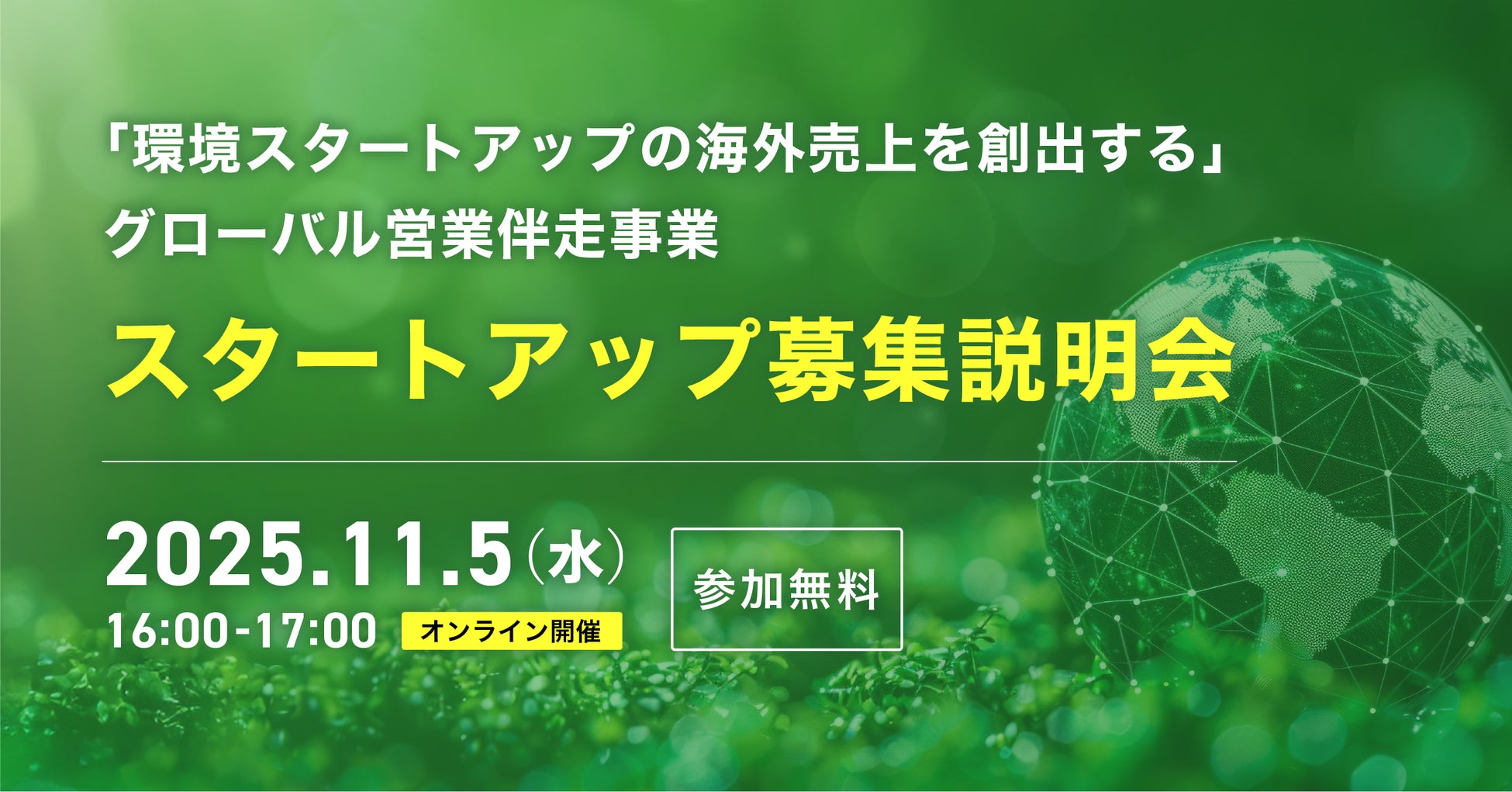 「グローバル営業伴走事業」で海外展開を目指す環境スタートアップ募集